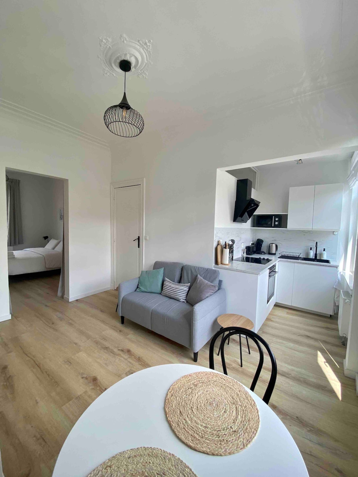 Welcome to our elegant Ixelles duplex, a haven of tranquility in the heart of Brussels. With its meticulous design and ideal location, it offers the perfect balance between modern comfort and local charm. Enjoy a cozy bedroom, a bright living room, and a convenient kitchen for an unforgettable stay. The bathroom and the second bedroom are downstairs. Just steps away from cafes, restaurants, and iconic sites, it's the ideal place to explore the city with ease.