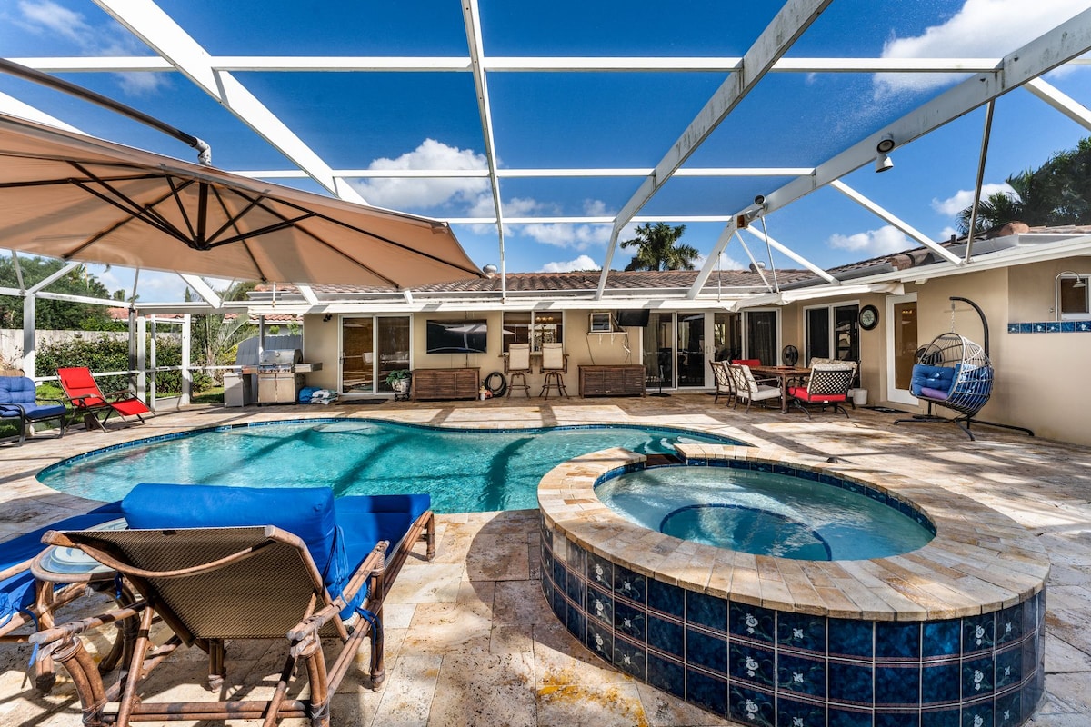 - Piscina CLIMATIZADA GIGANTE con flotadores y comodidades para todos. - JACUZZI perfecto para una noche fría. - BARRIL DE HIELO 400 para recuperarse y refrescarse. - Estación de dominadas y fondos para brazos POWER TOWER - CAMPO DE GOLF - FOGATA para relajarse - Hamaca. - N64 para 4 jugadores. - Cafetería - Reproductor de discos - Cargador para vehículos eléctricos/Tesla, 48 W - ¡Parrilla de propano y cocina surtida! - ¡A 7 minutos en coche de la playa! - Se adapta fácilmente a 6 adultos y 4 niños. ¡Ahora tienes la oportunidad de reservar la escapada perfecta para cualquier grupo que busque lo mejor de Fort Lauderdale!