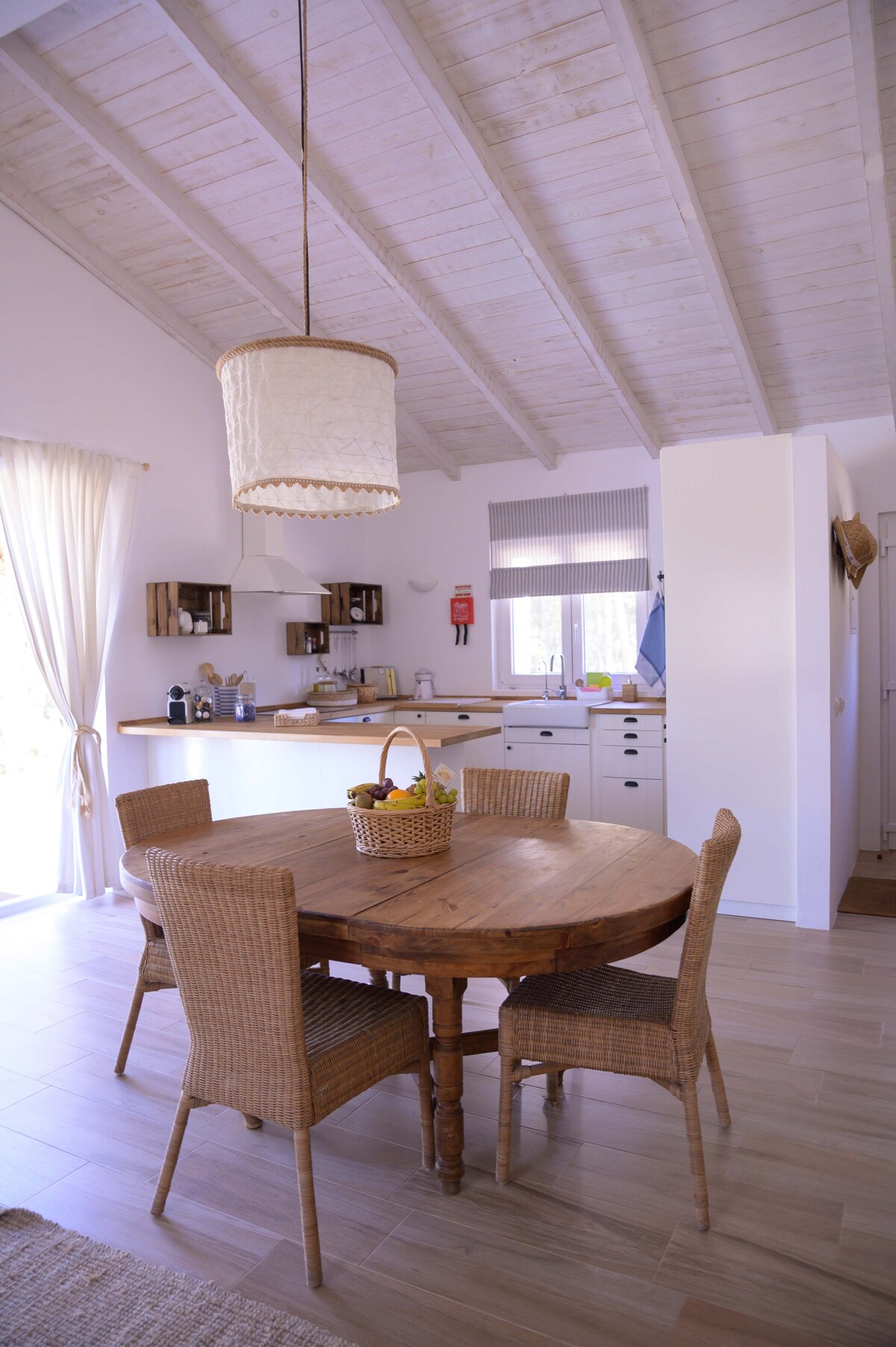 Nuestra casa es amplia y luminosa. Hemos creado un espacio abierto y confortable donde disfrutar de la tranquilidad y de la naturaleza que nos rodea. Es un antiguo monte alentejano rehabilitado, está aislado, en un paisaje de dehesa, y olivos. El pueblo, Barbacena, está a unos 3kms. Para llegar a la casa hay un camino de unos 400m de tierra por el que puede transitar cualquier vehículo, aunque despacio.