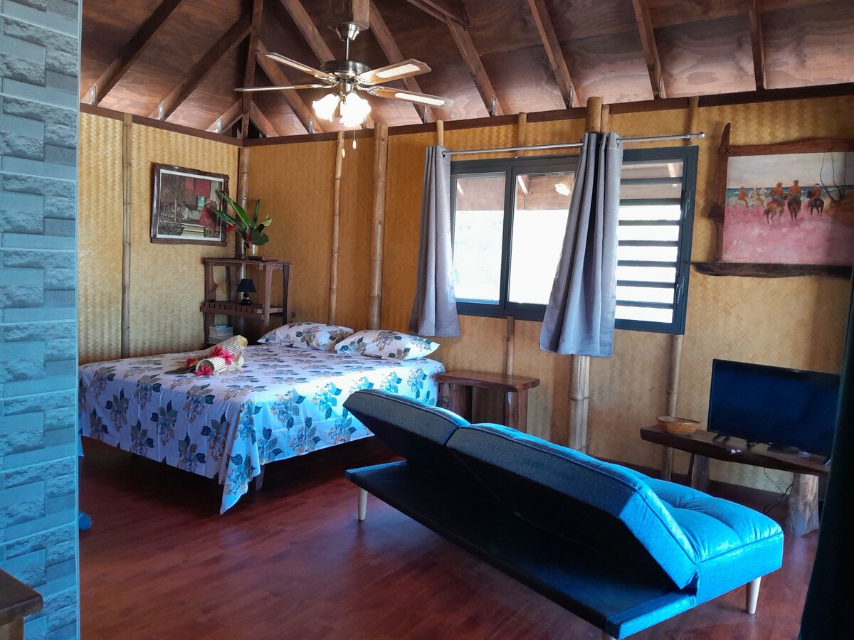 Vous êtes les bienvenus au "Fare Juanita" pour une escale nature, détente et culturelle au cœur de l'île sacrée. Nous vous proposons deux bungalows neufs, meublés, équipés et cosy. Chaque bungalow d'une surface de 60m2 peuvent accueillir jusqu'à 4 personnes max : il y a une chambre (lit 160x200cm) et un canapé lit dans le séjour (140x190cm). Entre les deux bungalows vous trouverez un espace commun ("Fare Potee") chaleureux et convivial avec une petite piscine pour se rafraîchir.