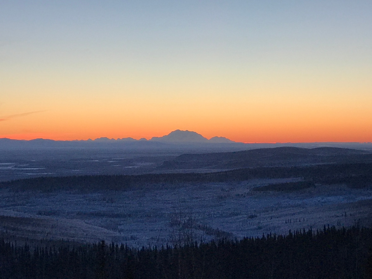 Privada y tranquila, esta acogedora cabaña se encuentra en el bosque boreal al final de una carretera privada cerca de Fairbanks. Disfrutarás del uso exclusivo de este refugio durante tu estadía. El mechero de un gran búho con cuernos en la montaña detrás de la casa solo rara vez se ve perturbado por el gemido distante de la locomotora que serpentea a través del valle de abajo. La propiedad en la que se encuentran esta cabaña y la casa principal se sienten remotas a pesar de que se encuentra a menos de 15 minutos de las tiendas y del aeropuerto internacional de Fairbanks.
