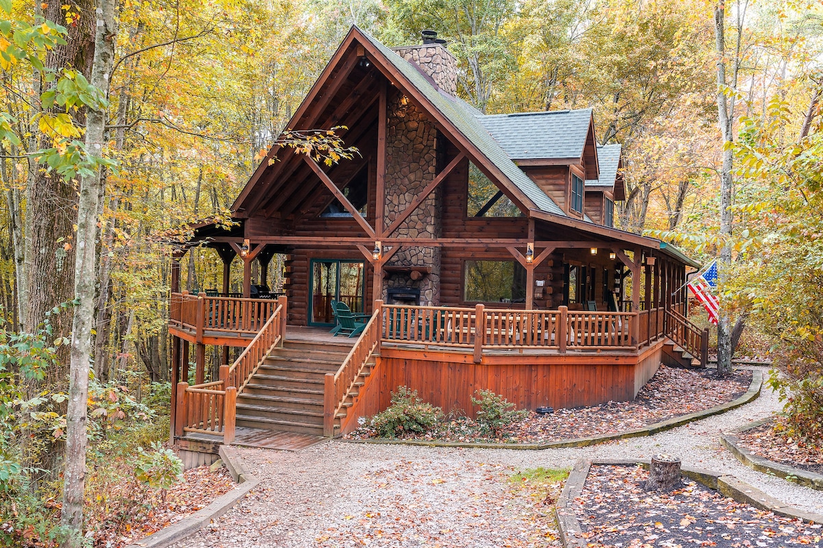 Spacious Lodge with Stocked Pond, Hot Tub, Games