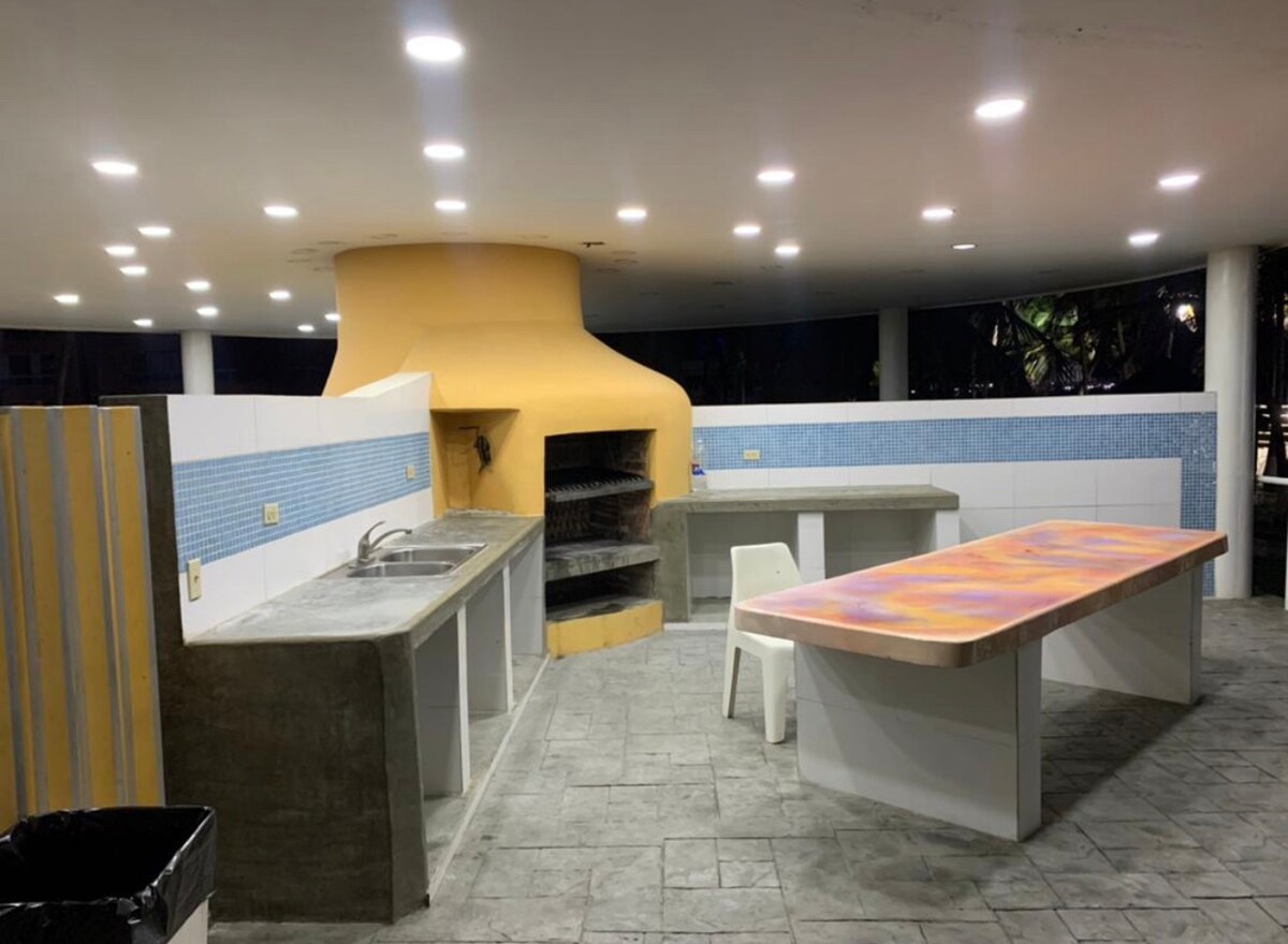 El apartamento cuenta con nevera,cocina, 2 aires acondicionado, calentador, 1 habitación privada, 2 televisores, 2 baños completos equipo de sonido, estacionamiento privado, piscina, parrilleras, acceso a la playa