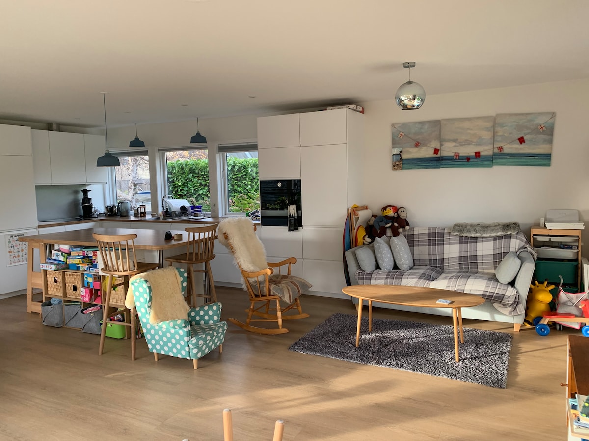 Välkomna till vackra Skanörs Vångar. Här finner ni vår villa på 152 kvadrat, fördelat på 1,5 plan, byggt 2017. Skanörs vångar är ett lugnt familjekvarter med smala charmiga gator och med gång och cykelavstånd till såväl ICA som gymmet, restauranger, bussen och havet. På bara ett par minuter på cykel finner ni 4-5 restauranger och några minter längre bort når ni vackra Skanörs strand med flertalet restauranger och aktiviteter. För att nå Falsterbo Horseshow är det för er en cykeltur på 10 minuter