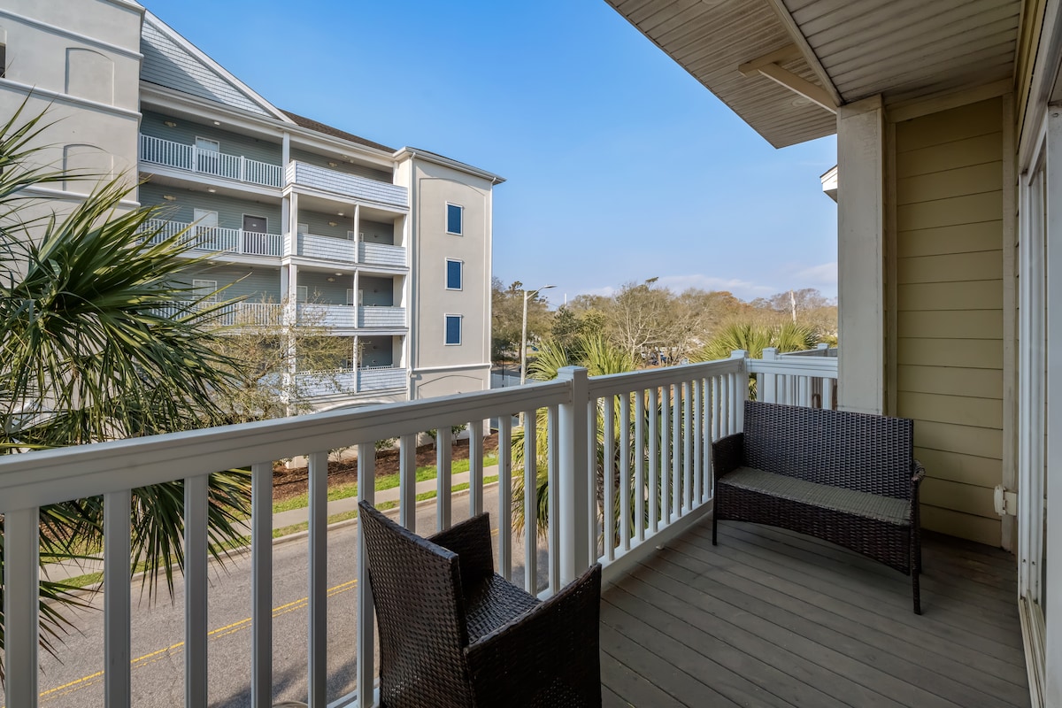 🌊 Escapada frente al mar | Recientemente renovado 2025 ¡Despertate con el sonido de las olas y las vistas panorámicas del Atlántico desde tu balcón privado! Este moderno y elegante departamento de 2 dormitorios en el corazón de Myrtle Beach cuenta con una decoración moderna, pisos de madera, sofá cama y colchones de primera calidad. Disfrutá de una cocina completa, lavadora/secadora y servicios del complejo turístico: piscinas cubiertas/al aire libre, jacuzzi, río lento y zona de chapoteo para niños. A pocos pasos de Family Kingdom, el paseo marítimo y el muelle de la 2nd Ave, ¡te espera la escapada costera perfecta!