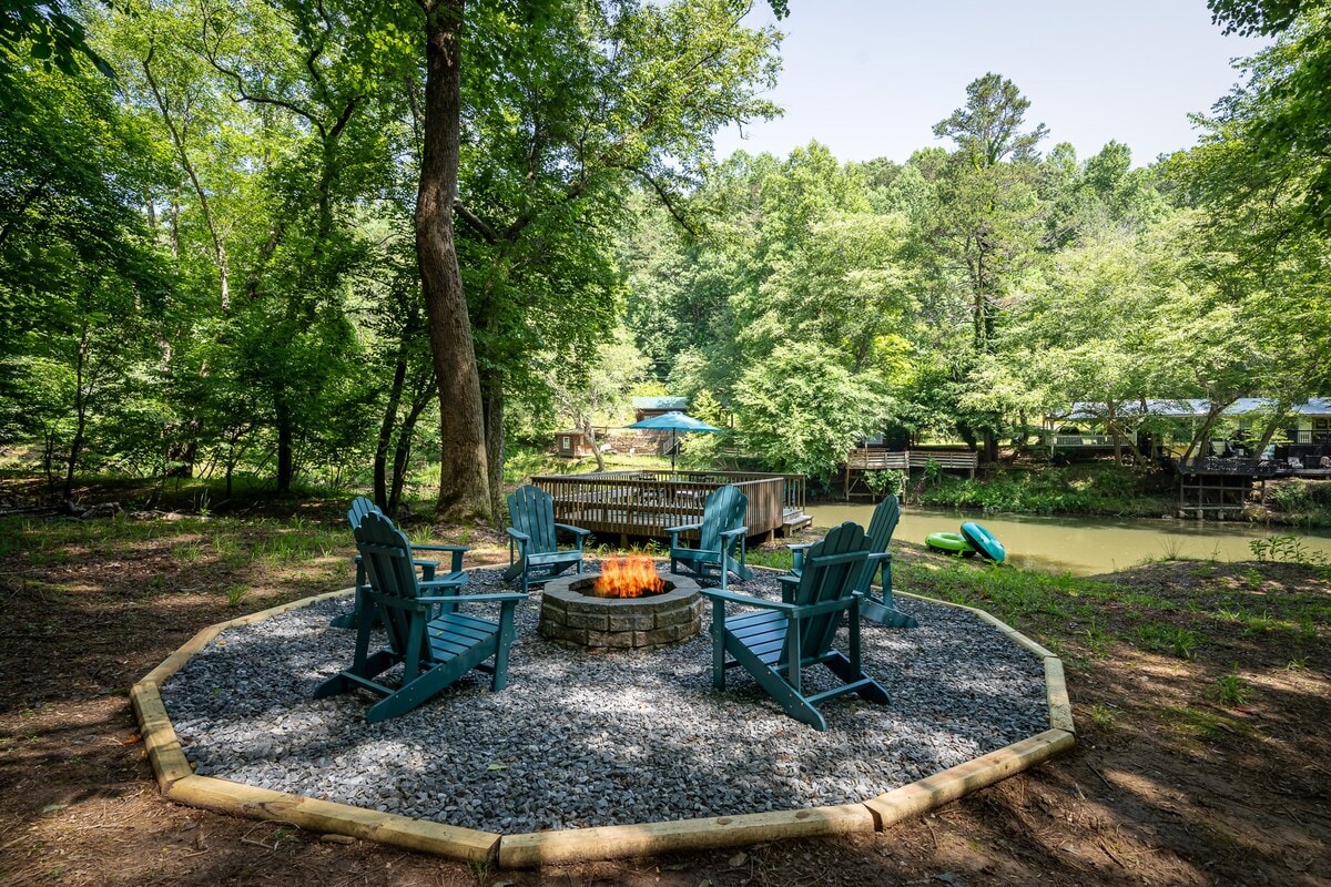Chimenea al aire libre en el complejo turístico Peaceful Coosawatee River