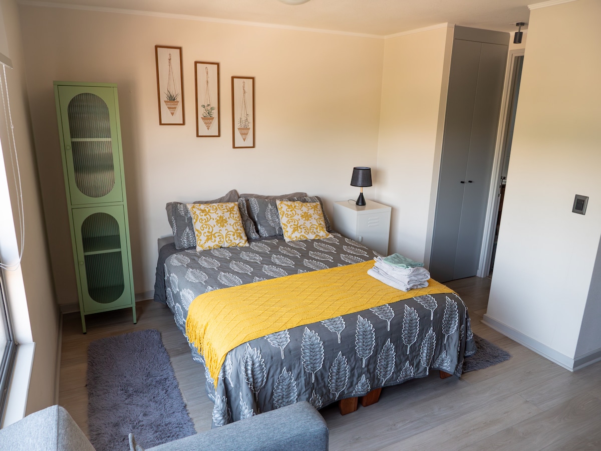 Estudio cómodo y funcional, ubicado a pasos del metro Rondizzoni, del Parque O’Higgins y del Movistar Arena, ideal para conciertos, eventos y disfrutar el verano en Santiago. Cuenta con cama de dos plazas, TV, wifi y ventilador, perfecto para descansar luego de un show o paseo. Incluye ropa de cama, toallas y electrodomésticos. Entorno tranquilo, con opción de check-in tardío.