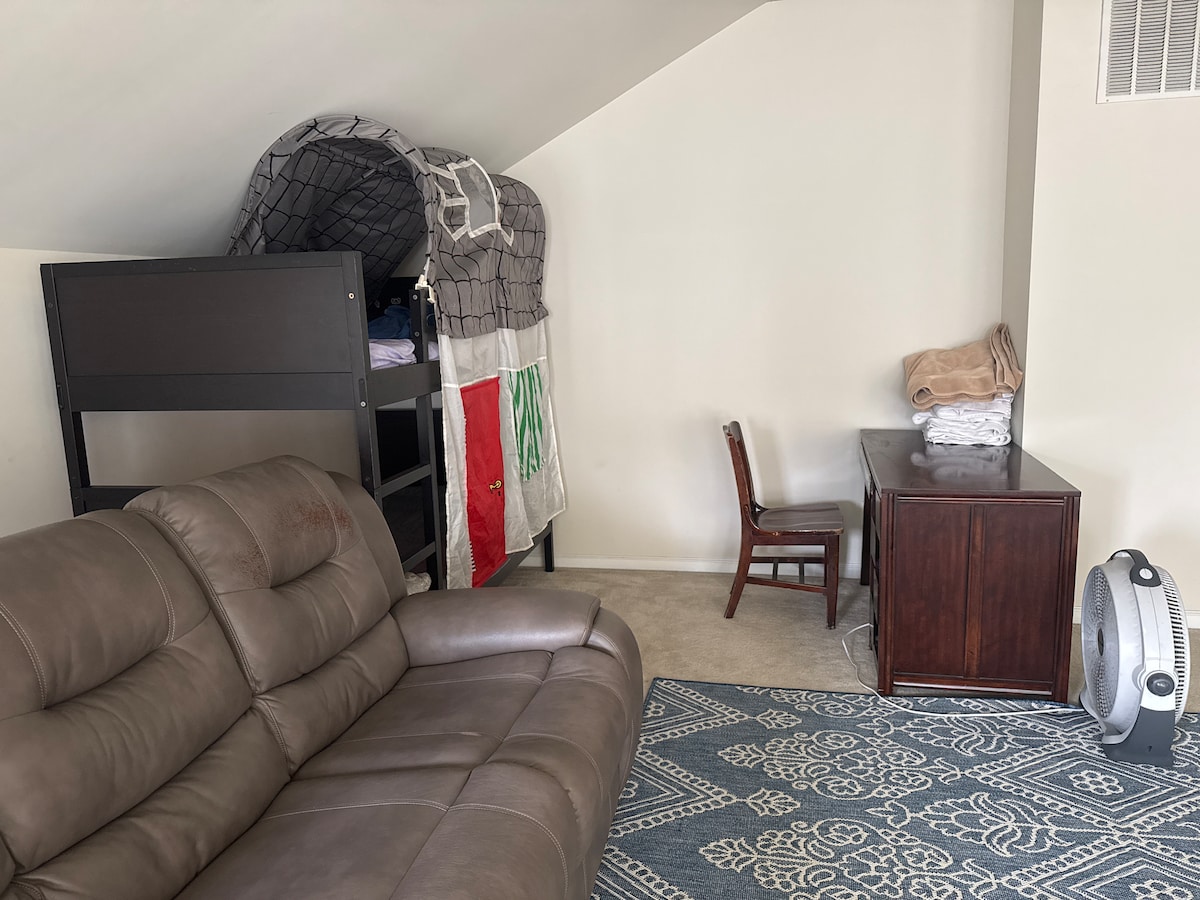 Este es un caballo convertido en un dúplex, de ahí el nombre de HB1. Tiene todas las comodidades de casa, incluida la entrada privada y una cocina totalmente equipada. Puede ser un poco acogedor si usas el colchón inflable, pero puede caber fácilmente en el vestíbulo o en la sala de estar. Los niños menores de 12 años se alojan gratis. Nos gusta proporcionar objetos interesantes tanto dentro como fuera de la vivienda; cualquier cosa, desde una cortina de ducha de camuflaje hasta la decoración de la caja de sombra.