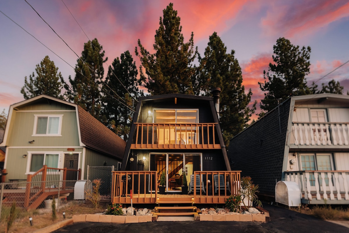 Chic Cozy A-Frame w/ Lake views & 5 min to skiing