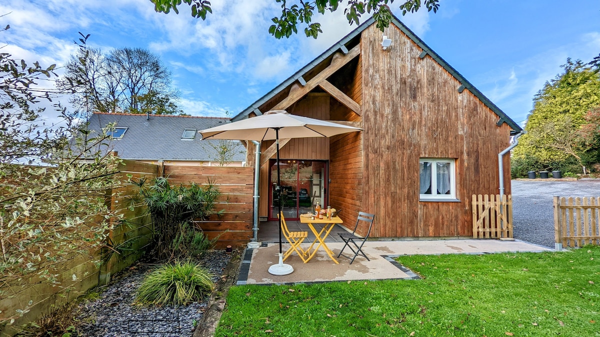 La tranquilidad del campo a 4,5 km del mar y del GR 34, a orillas de la aldea y la ruta de senderismo señalizada n.° 8: -en la planta superior de mi casa, encantador alojamiento independiente de 46 m2, con salón-cocina, 2 dormitorios, 1 baño, 1 aseo. - en el exterior, un espacio equipado con muebles de jardín.
