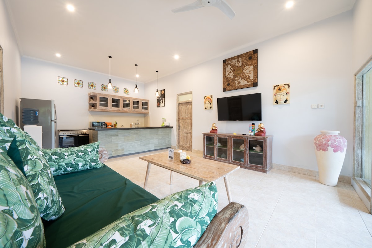 Escape to our stunning villa just 2km from the beach, with cafés and shops nearby. Enjoy a private pool, outdoor cinema, piano, VR games, PS5, Netflix, karaoke, and TVs in every room. Cook in the full kitchen or grill by the BBQ. Blending Balinese charm and modern comfort, this homey retreat offers everything for a peaceful, fun-filled family getaway. Book our Intro Promo for an unforgettable stay!!