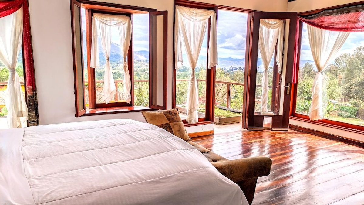 La Habitación Tiene Una ventana con vista al jardín. y a las montañas. la paz, tranquilidad , el silencio de las noches y la hermosa vista a los campos boyasences; es el atractivo de la casona de suanoga. fue construida hace 200 años con un estilo colonial con amplios corredores pisos coloniales teja de barro, colores vivos, luz y naturaleza. Hoy en día es visitada por turistas y grupos de amigos, familias y parejas que les gusta estar disfrutar del campo, le paz y la tranquilidad.