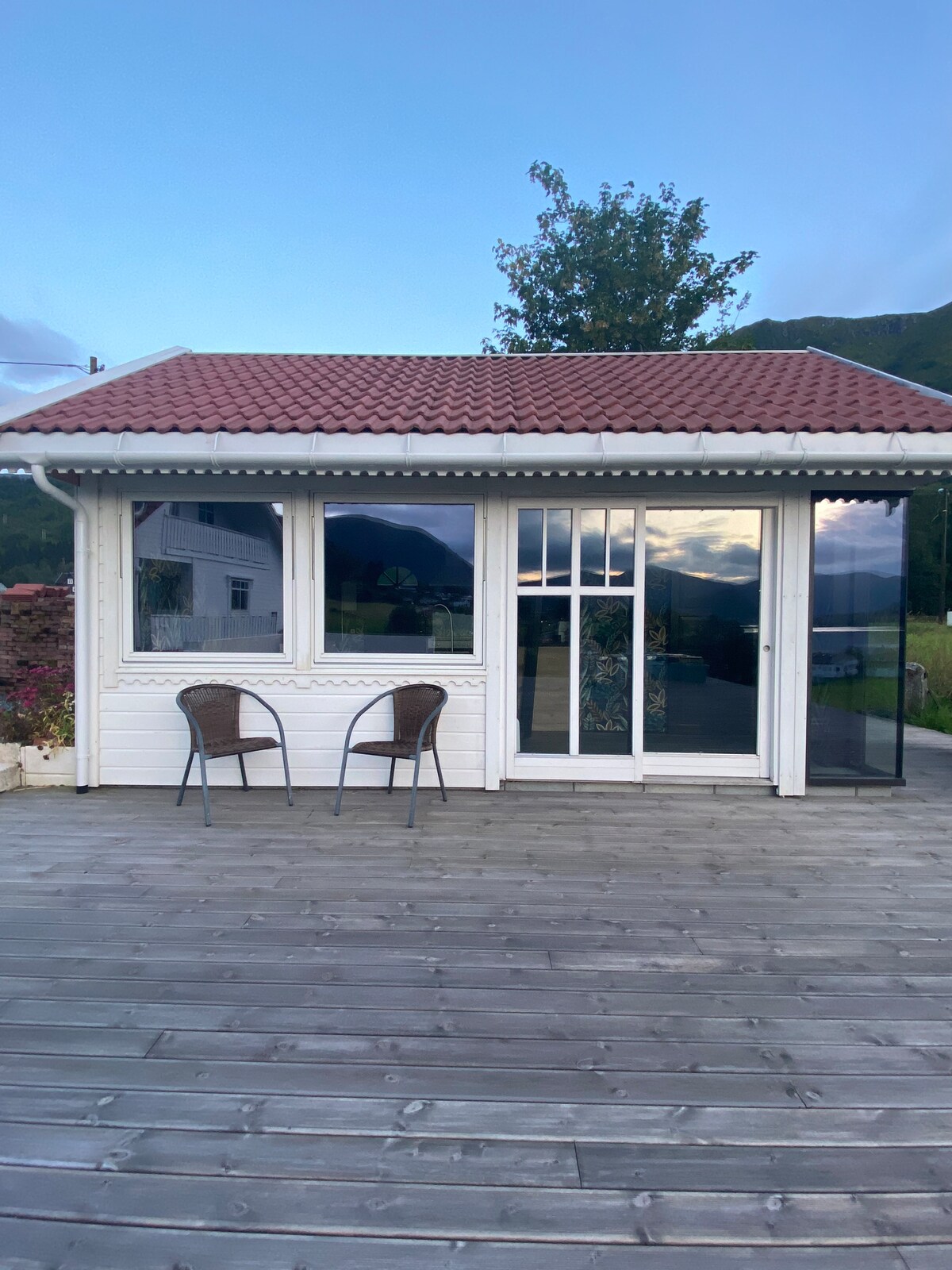Minicabaña nueva y moderna de estilo escandinavo con vistas a los fiordos y las montañas. Ideal para parejas y familias pequeñas con niños que buscan tranquilidad y experiencias en la naturaleza. Dos dormitorios, jardín privado y patio con mosquitero. Caminatas desde la puerta hasta los picos de las montañas, zonas de ruido y de baño. Cerca de Sandane con tiendas, restaurantes, cafés y panadería. Camas hechas y toallas incluidas. Carga de autos eléctricos de pago. ¡Pregúntanos sobre consejos de senderismo locales y joyas ocultas!