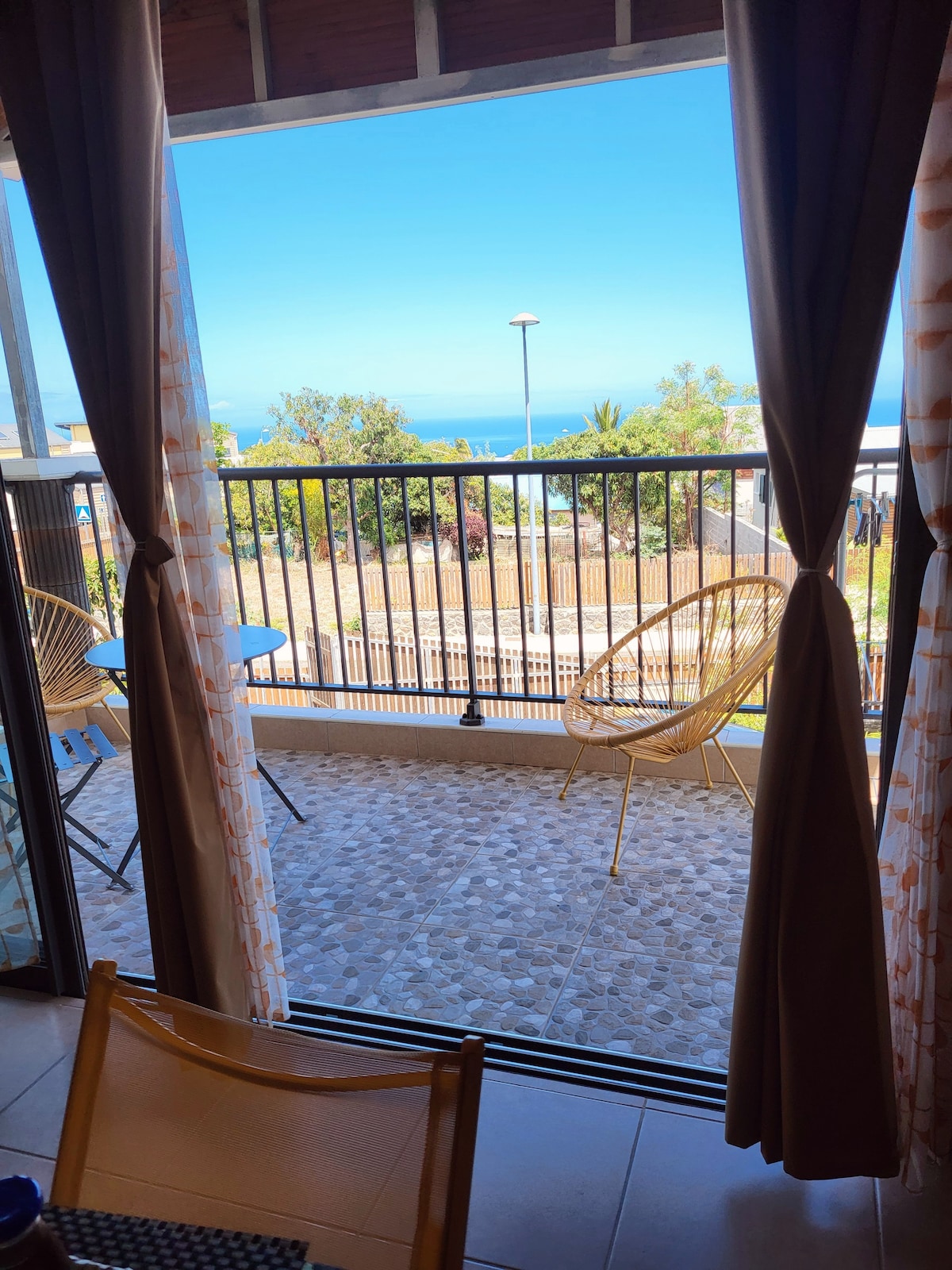 This beautiful cocoon offers a relaxing stay for the whole family. You'll enjoy a spacious terrace overlooking a private garden planted with palm trees. Newly renovated, it's located in a separate extension of a beautiful Creole villa. The property is nestled in a large tropical garden in a very quiet private development, 5 minutes from the Tamarins dual carriageway and 10 minutes from the beaches. Enjoy the sea view while sipping your coffee and watching the stunning sunsets.