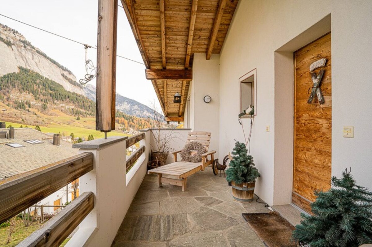 Relájate en este Rifugio único. Apartamento de 2 habitaciones y un aseo totalmente renovado en 2020, cuyo diseño interior ha sido completamente rediseñado. Reformado como loft con los materiales más nobles (granito Valser, parqué de palacio, mucha madera vieja, bañera independiente, chimenea de hierro abierta por dos lados, grifería de diseño). Con terraza y jardín protegidos. Ubicación soleada y tranquila. Entrada privada, sauna en el edificio anexo. Acceso directo a las pistas de esquí o autobús de esquí a tres minutos.
