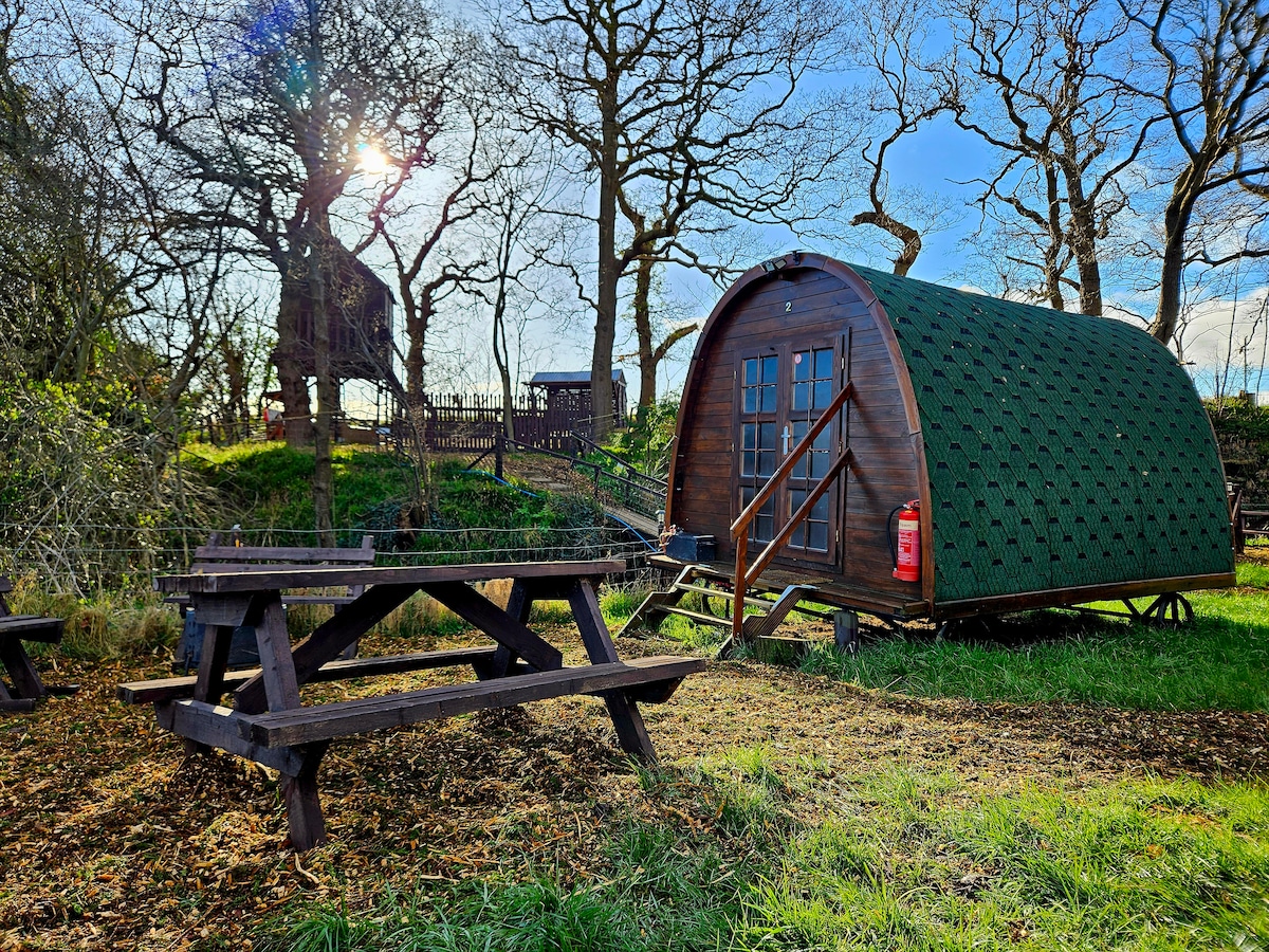 🌿 PerryTree Pods – Higher Kinnerton Escape to 27 acres of peaceful countryside beside a freshwater brook. Perfect for couples, families or quiet groups seeking off-grid nature and comfort. Enjoy the communal games cabin, treehouse, bar, firepits, BBQ, outdoor kitchen, and modern wash facilities. One glamping pod accommodating up to 4 persons. Ideally located on the North Wales–England border, just 5 mins from A55 (J36). Group stays: airbnb.co.uk/h/perrytreegroups