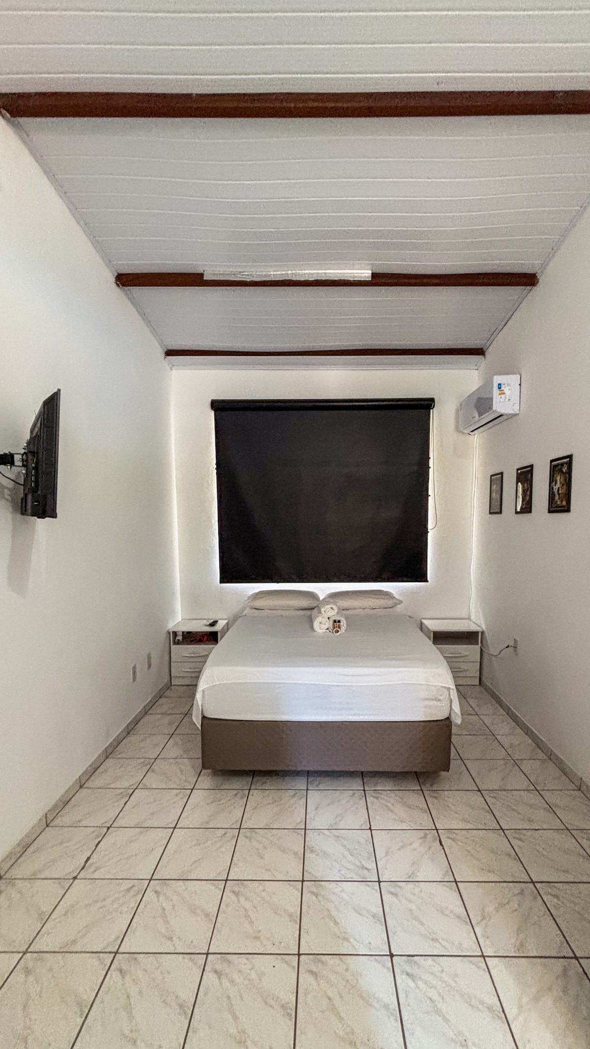 Com uma decoração aconchegante e romântica, este apartamento compacto é ideal para noite de núpcias ou aniversario de bodas. Equipado com ar condicionado. Banheiro super confortável, com box em blindex. Cozinha com frigobar, cooktop, micro-ondas, sanduicheira, liquidificador, pratos e talheres, copos, taças de vinho e de champanhe. Espaço reservado para as malas, e guarda-roupas em drywall. Só esta faltando vocês para ser perfeito!