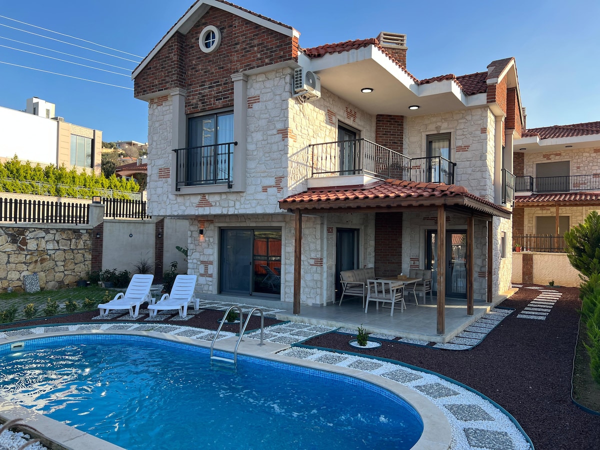Casa nueva, jardín de 750m2, piscina de 10*5 M, estacionamiento privado, 2 dormitorios dobles con baño privado, 2 dauble badroom y 1 solo badroom Total 5 dormitorios y 3 baños.. La casa es de 240 M2 2 balcón y gran terraza.. Usted debe unirse a la vocación con gran piscina y el sol brillan bajo el cielo azul... Foça es el casco antiguo con casas de piedra,bonitas playas y restaurantes de peces.. Piscina privada, jardín privado y plaza de aparcamiento privado..