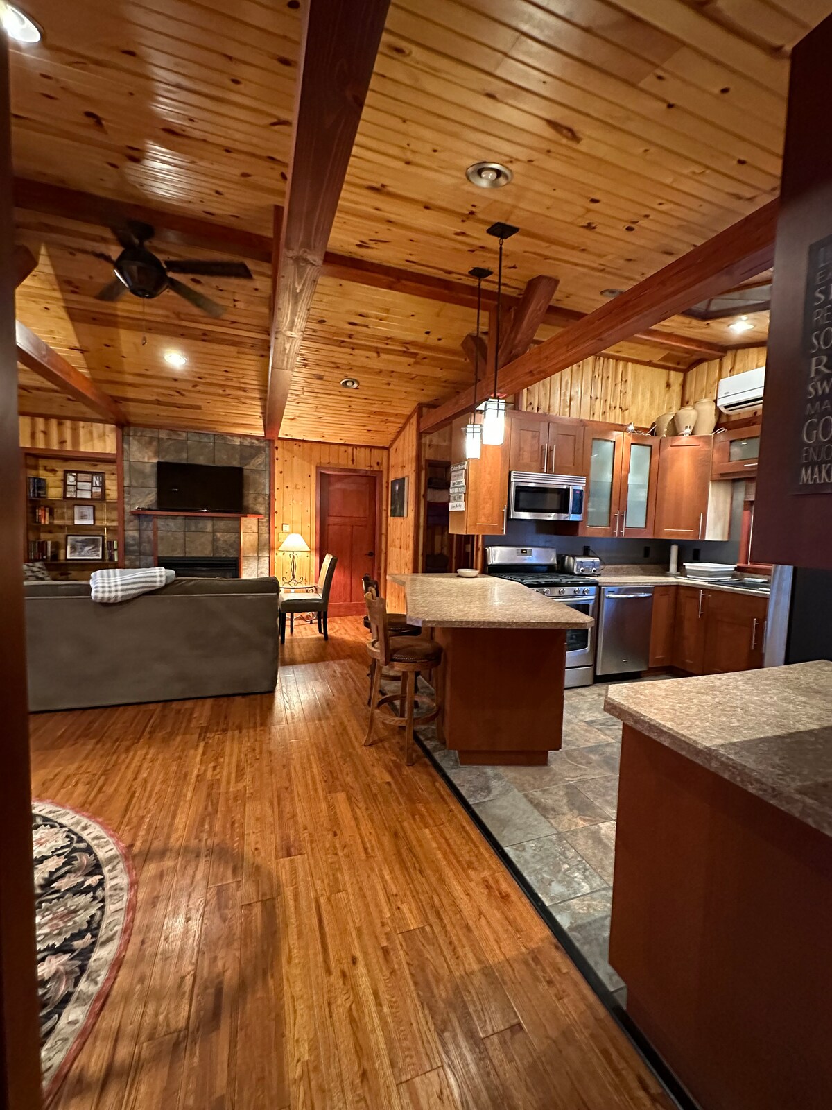 Con techos de 10-11' y 1000 pies cuadrados, este soleado apartamento es el segundo piso de una cabaña de troncos de 1860. Completamente renovado con nuevos suelos, pintura, accesorios y mucho más, es un refugio perfecto de la ciudad. Explora los 500 acres contiguos de bosque estatal, con lago público y embarcadero al otro lado de la calle para pescar y remar. El sendero adyacente conduce directamente al segmento Parnell del sendero de la Edad de Hielo y al parque estatal del lago Mauthe.