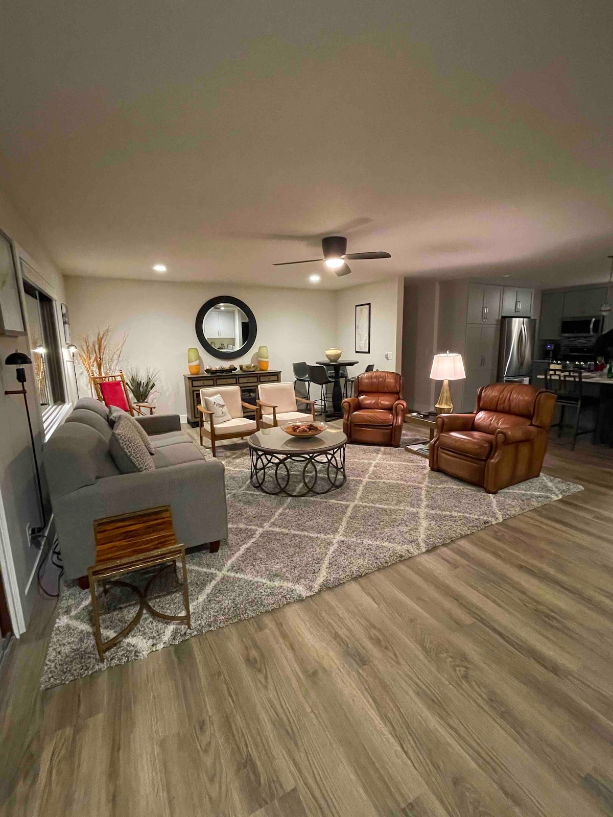 Disfruta de un hogar lejos de casa en este dúplex elegante y céntrico. Esta casa recién renovada, apta para familias y mascotas pequeñas, tiene un porche trasero y un patio de un acre. En el interior encontrarás una cocina surtida, un dormitorio tamaño king y un dormitorio tamaño queen, con dos colchones de aire y bomba eléctrica para acomodar a huéspedes adicionales. La sala de estar está cómodamente amueblada, incluyendo un escritorio y wifi.