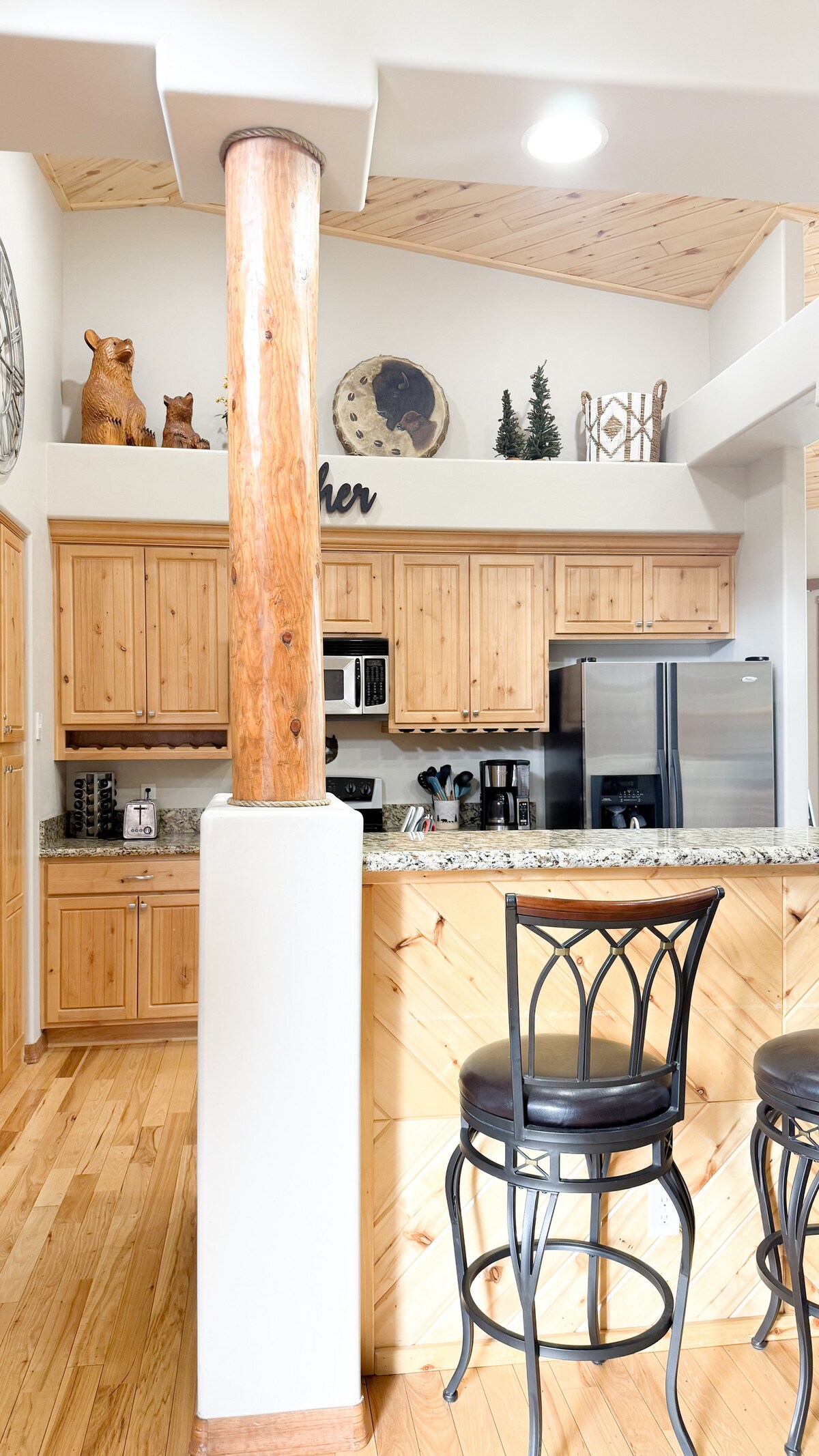 Escapate a los pinos en esta cabaña de 2 dormitorios y 2 baños recientemente renovada, con un moderno exterior en negro y roble y un interior acogedor y cómodo. Relajate junto a la chimenea, hacé un asado en la terraza o reunite con los tuyos alrededor de una fogata bajo las estrellas. Los detalles para familias incluyen juguetes y juegos para niños, por lo que es perfecto para una escapada con tus seres queridos. Elegante y acogedor, este refugio de Show Low combina el diseño moderno con el encanto de los pinos.