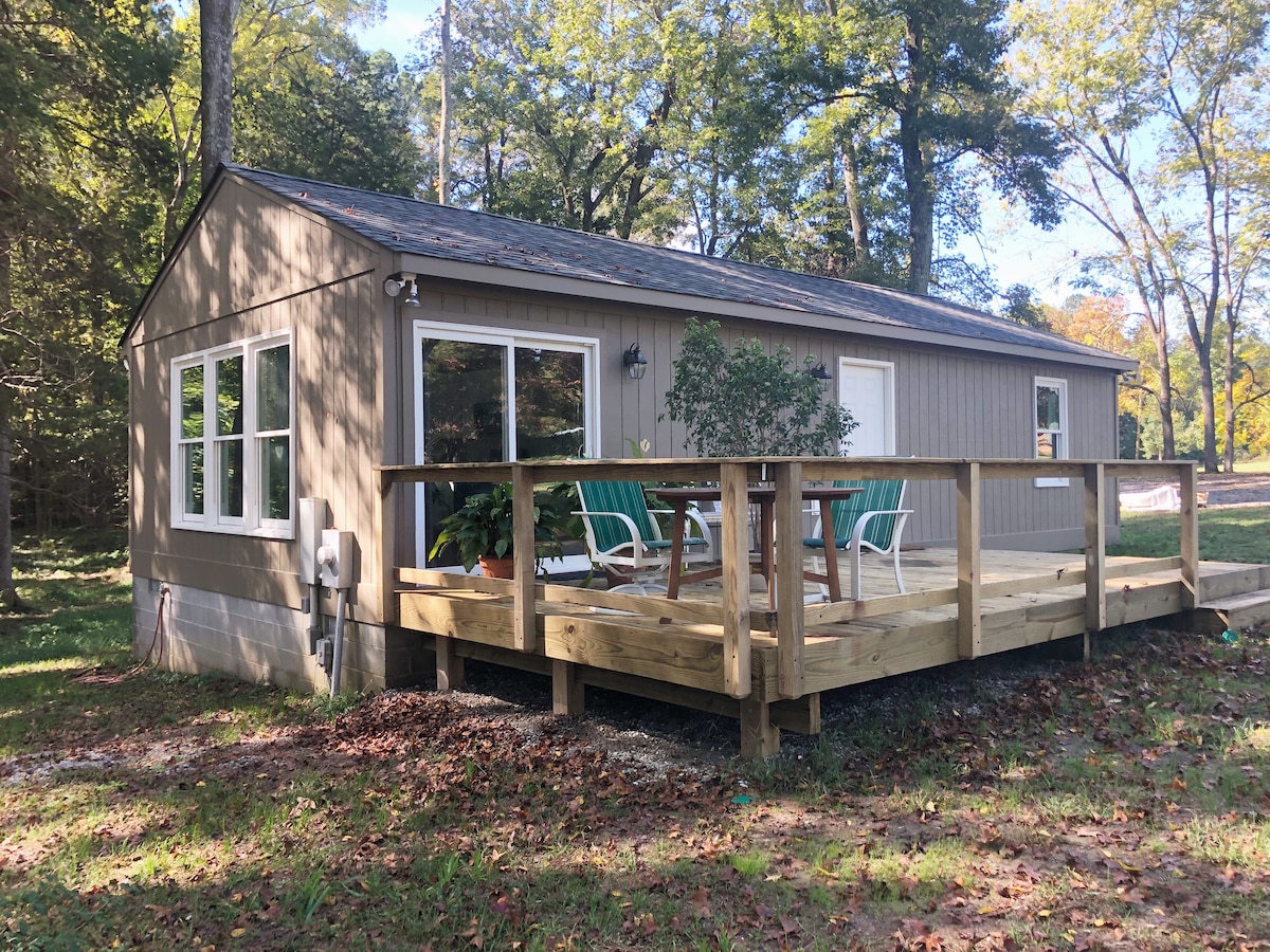 Disfrute de una vida tranquila frente al lago en Heron Rock Cottage, donde puede pasear por el bosque, nadar o pescar en el muelle, remar en kayaks en el lago o simplemente relajarse y disfrutar de la vida silvestre y las hermosas puestas de sol. Ubicada en 6 acres en el condado de Dinwiddie, esta cabaña recientemente renovada incluye 2 dormitorios, baño completo, cocina completa, sala de estar con chimenea y patio privado con comedor.