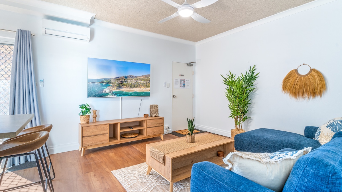 Manta Ray's Pad goza de una posición privilegiada, siendo absolutamente frente a la playa, con vistas a la playa principal de Forster. Orientado al norte y bañado por el sol invernal, el apartamento aprovecha el clima y las temperaturas oceánicas de Forster, «perfectos durante todo el año». Es el lugar ideal para escapar de los meses más fríos y tomar el sol en el balcón mientras observas a los delfines y ballenas jugar; ¿tal vez con una bebida en la mano, recostado en el sofá cama? Forster ofrece mucho que hacer y ver, no te quedarás sin opciones.