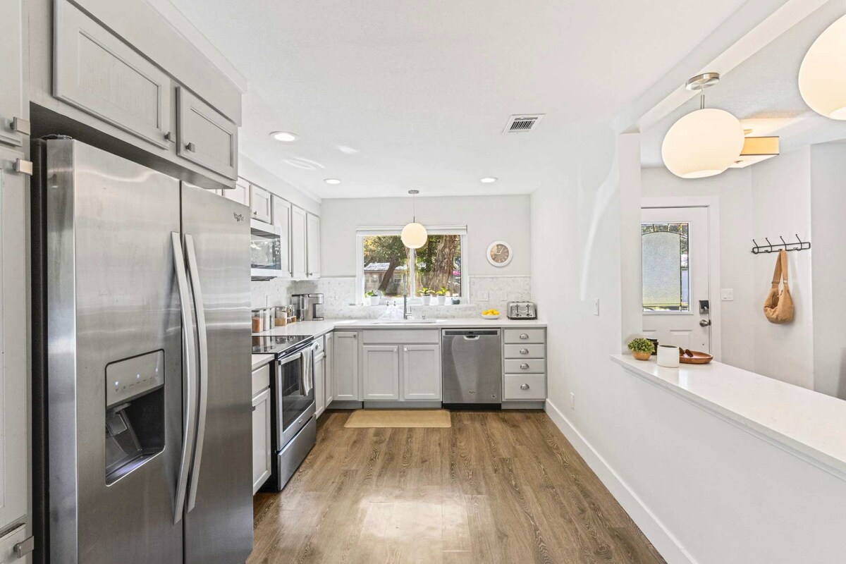 ☆☆Qué te va a encantar de Small Serenity 3☆☆ ✹ Recientemente renovada: cocina y baño renovados, acabados de lujo, muebles nuevos ✹ A 4 minutos de la playa: enorme playa pública con estacionamiento, baños y restaurante ✹ Diseño impresionante: liviano y luminoso, con un estilo moderno y playero ✹ Con todo lo necesario: artículos de playa, bicicletas y suministros para los huéspedes ✹ Excelente ubicación: restaurantes, tiendas, atracciones cercanas ✹ Muchos restaurantes a poca distancia a pie o en bicicleta ✹ Comunidad de 5 viviendas con amplio patio vallado ✹ Smart TV y Wi-Fi rápido
