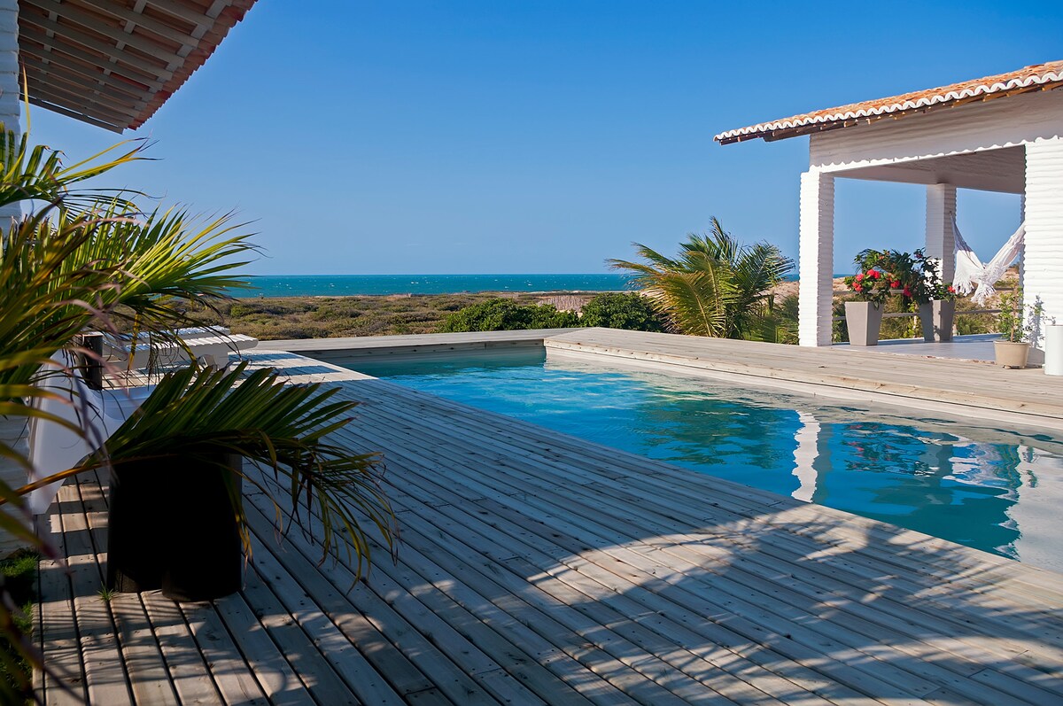 Descubra o refúgio perfeito à beira-mar em nossa casa de praia contém 8 Suítes, sendo 2 quádruplos 4 suítes triplos e 2 suítes de casal, todas equipadas com ar, frigobar Tv e chuveiro elétrico, Desfrute de uma experiência exclusiva, com piscina privativa, quadra de Beach Tênis e acesso direto à praia. Ideal para famílias e amigos, nossa casa oferece conforto, relaxamento e diversão em um dos destinos mais belos do Ceará. Viva momentos inesquecíveis em Parajuru, Beberibe, com vistas incríveis