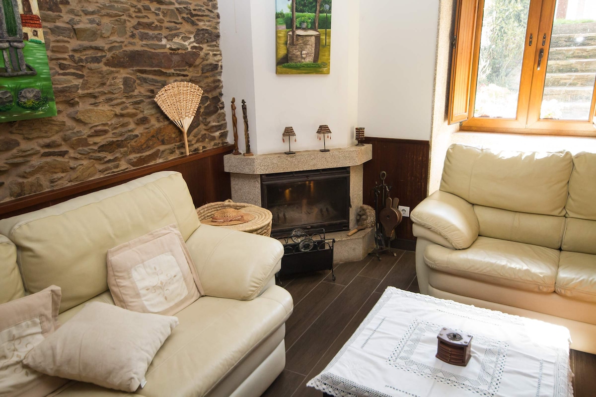 La acogedora casa tiene un concepto abierto con un espacio diáfano. Cuenta con un dormitorio con cama king-size, un sofá-cama, dos baños y una pequeña cocina. Dispone de Wi-Fi gratuito, calefacción, bañera de hidromasaje y TV de pantalla plana. La parcela tiene aparcamiento privado, terraza y jardín amplio. La Casa de la Pradera se sitúa en A Baña, A Coruña, Galicia. A 2 km de Negreira, pueblo que ofrece todos los servicios. A 16 km de Santiago de Compostela y 30 km de las playas.