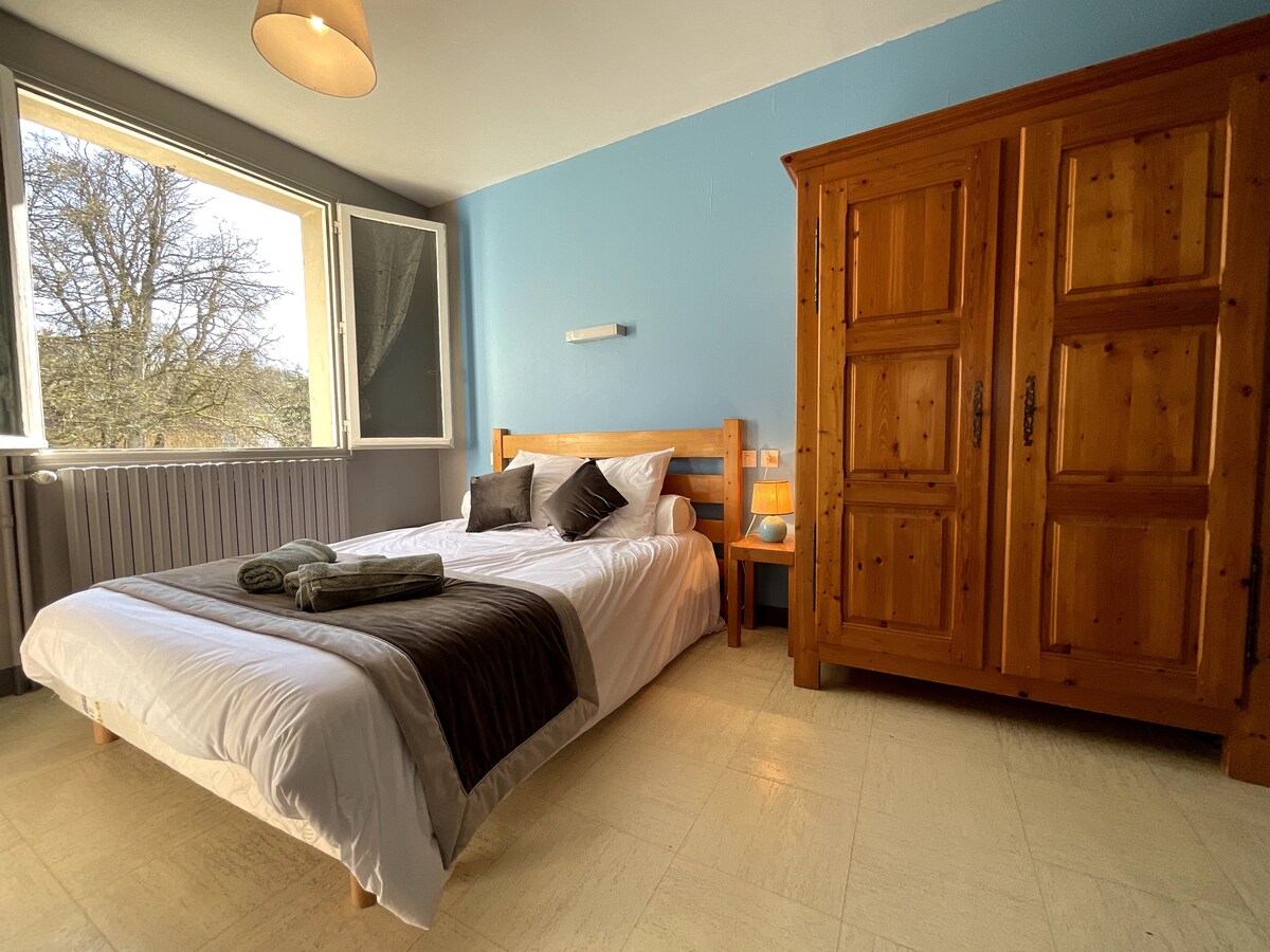 Este apartamento de 80 m2 está en la planta baja de una casa con encanto en la ciudad. Soleado y luminoso, podrá disfrutar de la vegetación de su pequeño jardín. Este alojamiento (2 dormitorios, sala de estar, sala de estar) puede alojar hasta 6 personas. Muy tranquilo, está situado en una calle poco transitada. En 10 minutos a pie se encuentra en el centro de la ciudad y en 5 minutos en los senderos del parque que conducen a la piscina del Carrousel y al parque de la Colombière. Alojamiento amueblado de turismo clasificado 3 estrellas.