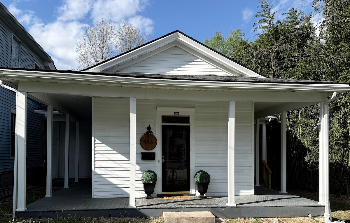 Ven a visitar el distrito de River Row. Situado en el corazón del centro de Frankfort. ¡A poca distancia a pie de tiendas, restaurantes, bourbon, música en vivo y el edificio del Capitolio! Descubre lo que Frankfort tiene que ofrecer durante el día. Vuelve a casa para relajarte en el jacuzzi y disfrutar de una hoguera en el patio. Tómate el café por la mañana y relájate en el columpio bajo el porche cubierto, mientras escuchas las campanas de la iglesia. Capacidad para 8 personas con dos camas tamaño king, 1 cama tamaño queen y dos camas individuales en un espacio loft dentro del dormitorio queen.