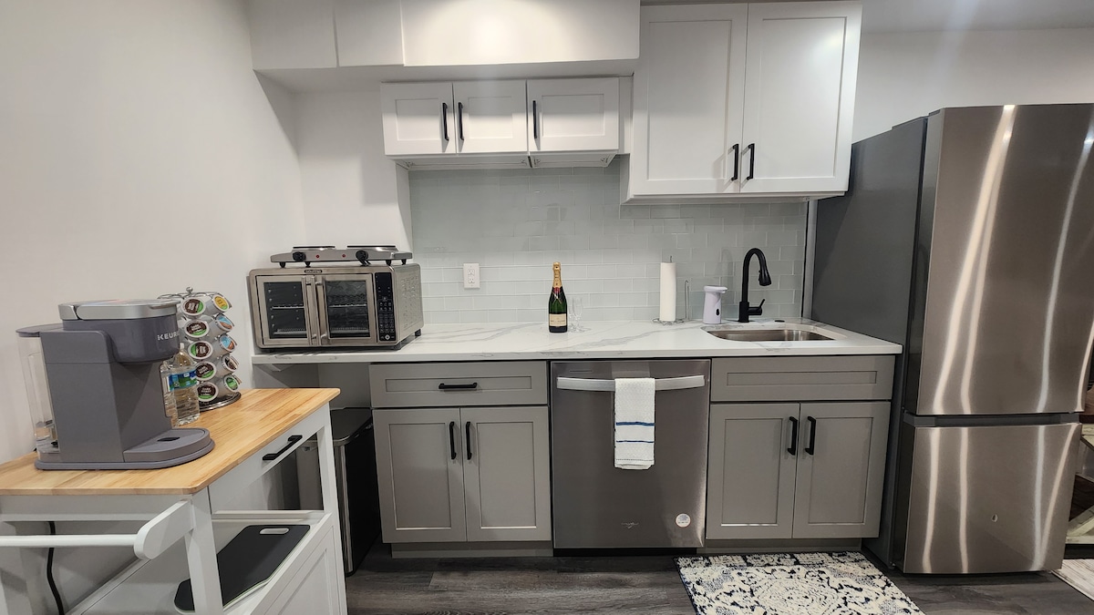 Relájate y desconecta en este apartamento tranquilo y elegante. ¡Esta ubicación está a solo 5 minutos del casino Parx! El aparcamiento es gratuito y está a 5 pies de donde te alojarás. Este espacio cuenta con un patio con chimenea y un comedor al aire libre bien iluminado. En el interior, las paredes están bien aisladas, por lo que el espacio es tranquilo. ¡Y cuenta con una chimenea de gas para las frías noches de invierno! Internet es rápido y gratuito. Hay un escritorio en la sala de estar que es perfecto para trabajadores remotos. También hay un cargador de Tesla.