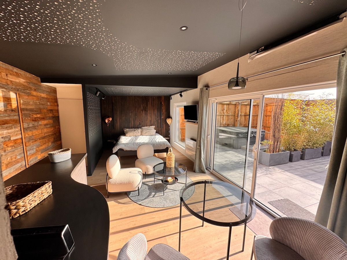 ✨Envie de vivre un Moment Magique en Amoureux ou entre Amis ?❤️ Offrez-vous une parenthèse hors du temps dans un Grand Spa privatif à l’ambiance romantique sous le Ciel Étoilé, véritable invitation au voyage sous les tropiques🌴 💦Détendez-vous dans l'Espace Bien-Être exceptionnel avec • Spa XXL • Sauna • Smart TV 🌿Situé à l’intérieur avec vue sur le jardin, profitez d’un séjour inoubliable été comme hiver 🏡Le Lodge & Sweety❤️Spa, magnifique maison en pierres nichée au calme de la campagne