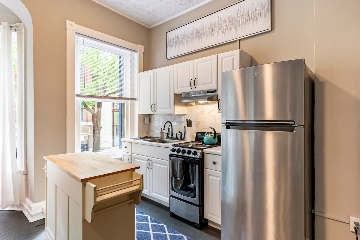 ¡No hay lugar como el hogar cuando visitas nuestra acogedora morada de 1 dormitorio y 1 baño! Esta unidad de la segunda planta está situada en la parte trasera de una casa histórica que se ha convertido en un apartamento. Este espacio cumple todos los requisitos para una escapada de fin de semana o una estancia larga. ¡Disfruta de una sala de estar/comedor abierta, una nueva cama tamaño king de espuma viscoelástica y un baño totalmente amueblado! Ofrecemos una entrada sin llave y 1 plaza de aparcamiento, una rareza para la vida en el centro. Los residentes viven arriba y abajo. NO se admiten mascotas, música fuerte ni fiestas.