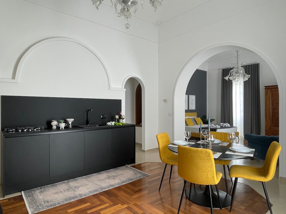 Dionisio 6 es un apartamento elegante, acogedor y cálido en la planta baja, ubicado en el barrio judío de «La Giudecca», en el corazón de Ortigia, a solo 50 metros del mar. Nuestro loft ha sido completamente renovado en 2021 a través de una cuidadosa restauración conservadora utilizando materiales de la más alta calidad con el fin de respetar las características del antiguo edificio en el que se encuentra. La funcionalidad y el diseño se han mezclado con la antigüedad de la estructura arquitectónica.