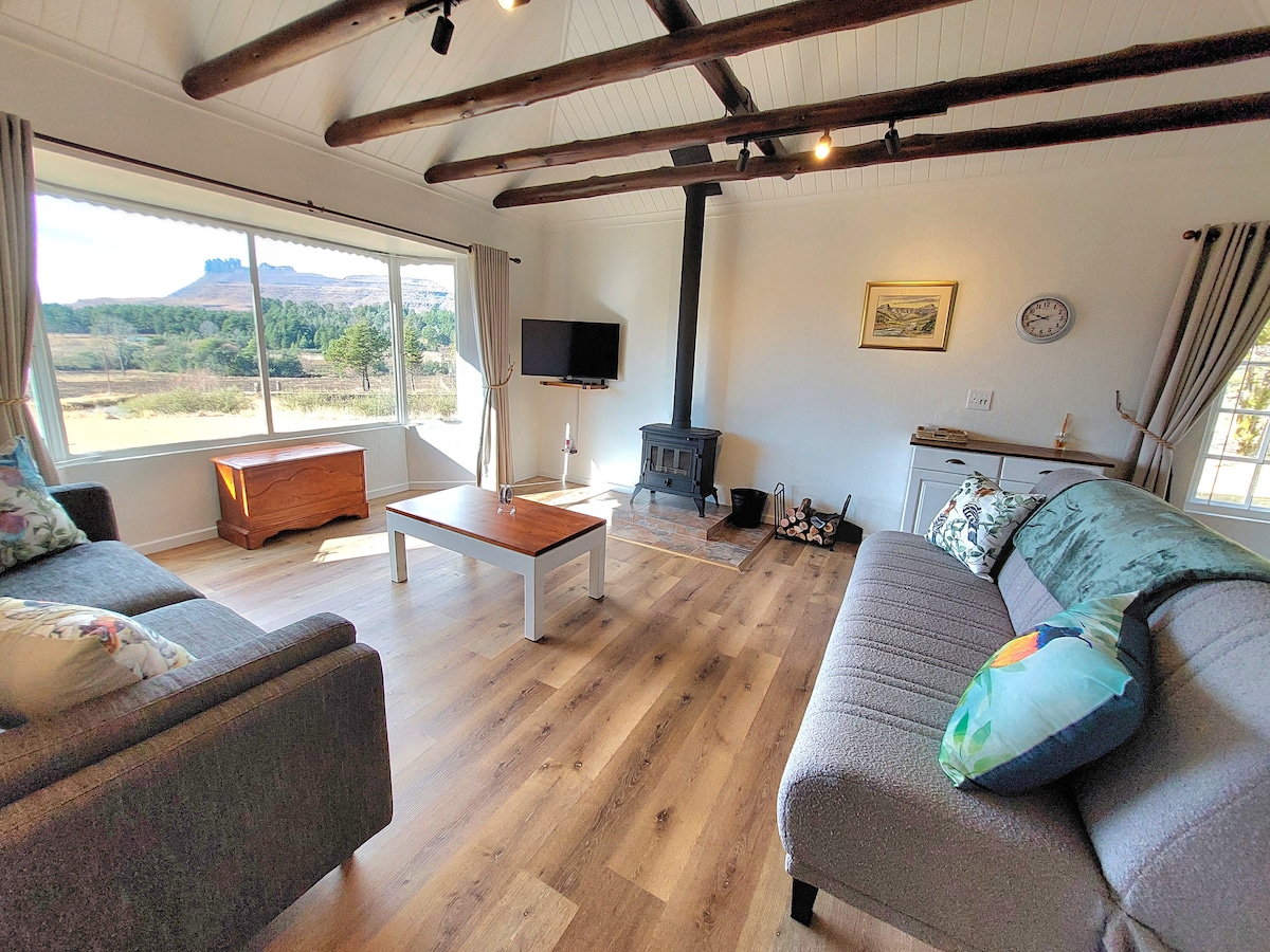 Our farm cottage is situated on the Drakensberg escarpment overlooking the valleys of Van Reenen’s Pass. This farm stay 4 sleeper unit is fully equipped with all you will need to live, work or get happy. Hiking, fishing, strolling, swimming, bike riding and hanging out on the farm is what we offer. We are load shedding resistant with WiFi during the shedding but we have lovely candles and fireplaces for your entertainment… Bring a book, a journal or an easel and come and enjoy.