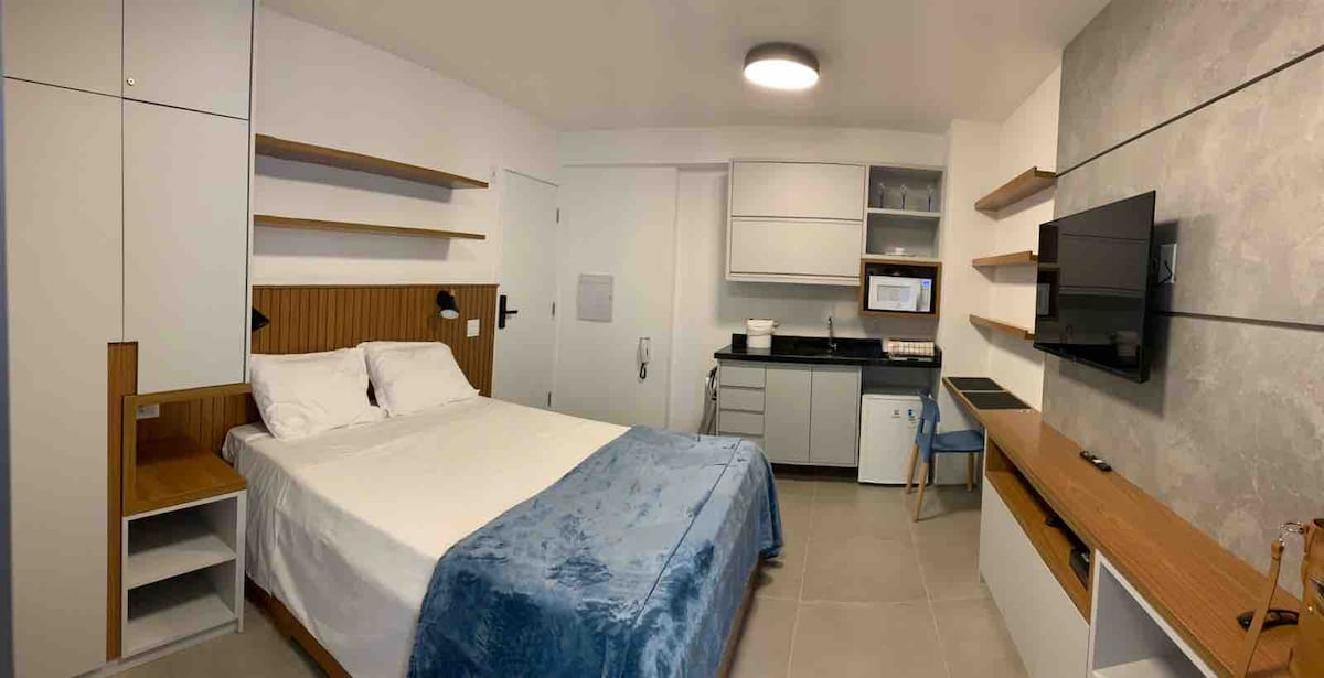 Estudio Moderno Completo A solo 2 cuadras del Shopping Frei Caneca y a 500 metros de la estación Mackenzie-Higienópolis, este estudio ofrece comodidad y practicidad. • Aire acondicionado • Wi-Fi 250mb • Smart TV • Lavadora y secadora (uso gratuito) • Mesa de trabajo y silla cómoda • Toallas y ropa de cama incluidas • Cocina completa: microondas, cafetera, horno y cocina • Plancha y secador de pelo Ideal para estancias cortas o largas, cerca de la Avenida Paulista.