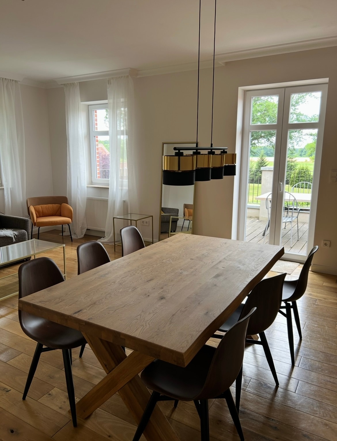 Te damos la bienvenida a tu nuevo y acogedor apartamento de arriba, al que puedes llegar fácilmente a través de una práctica escalera externa. Este apartamento inundado de luz cautiva con sus comodidades modernas y un ambiente acogedor. Ideal para aquellos que buscan un refugio tranquilo, el espacio habitable está perfectamente cortado y ofrece una calidad de vida agradable. Se encuentra en estilo rural en una granja de caballos cerca del área recreativa de Saller See.