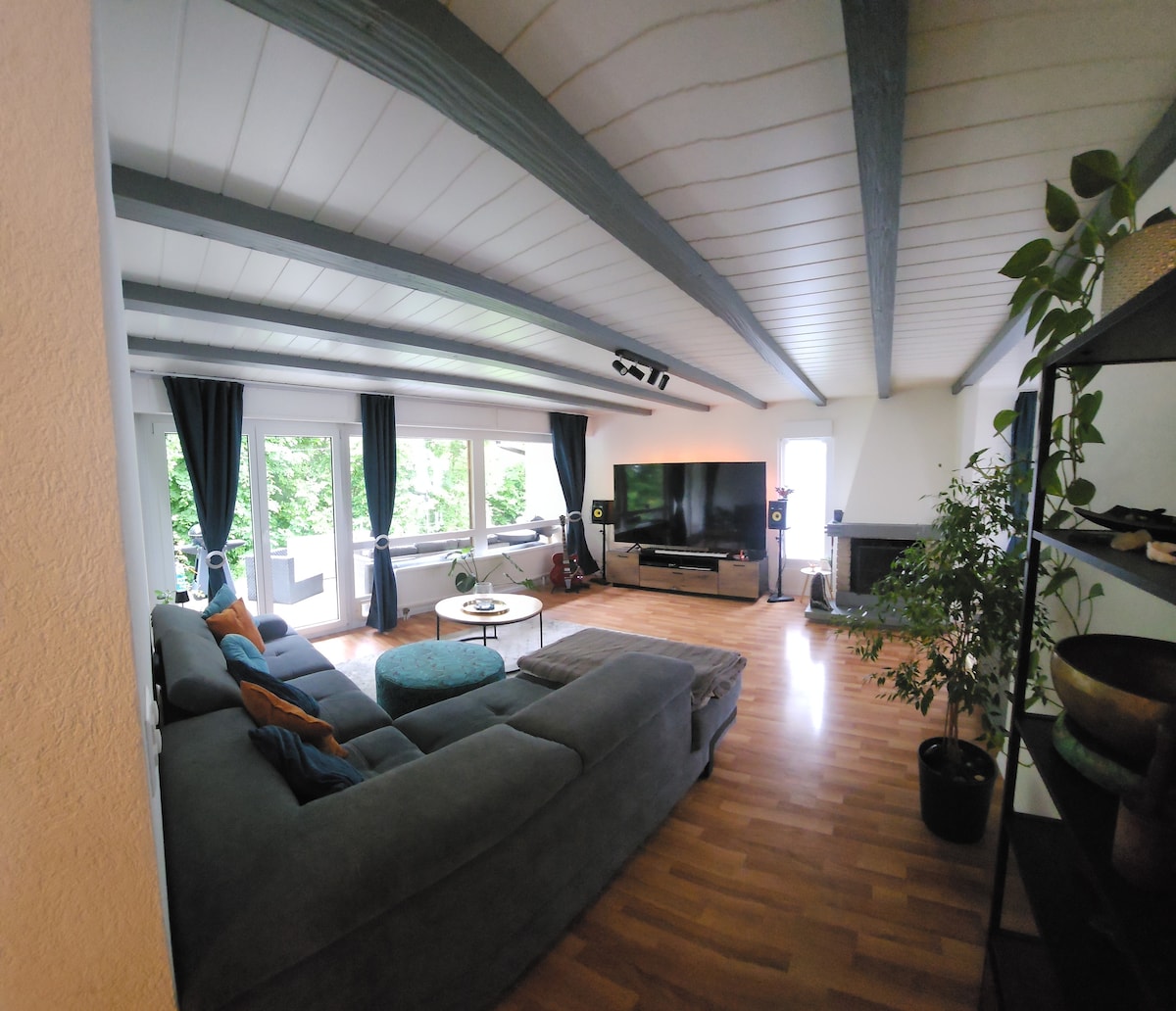 Hermoso ático para maravillosas vacaciones familiares, o un gran momento con amigos. El ático tiene 4 dormitorios. La residencia tiene piscina de temporada y parque infantil, Está muy bien ubicado, en un pueblo tranquilo, residencial, a 2 minutos a pie del bosque, con buen acceso en auto y transporte público (parada de autobús frente al edificio). Murten está a 10 minutos y Fribourg y Berna están a unos 20 minutos.