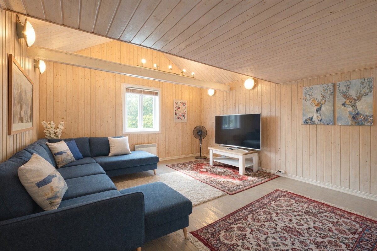 La casa tiene un acogedor salón con vistas espectaculares, una cocina totalmente equipada y un spa donde podés relajarte después de un largo día. Hay dos dormitorios con una cama doble y un loft con cuatro buenos colchones. Además, una cama para niños pequeños. En el exterior, te espera una gran terraza donde puedes disfrutar de las impresionantes vistas. La casa está rodeada de naturaleza exuberante con oportunidades de senderismo en la zona, y por el lago justo debajo de la casa se puede navegar, pescar y nadar. Es posible alquilar un barco con motor eléctrico. El SUP y la canoa son gratuitos.