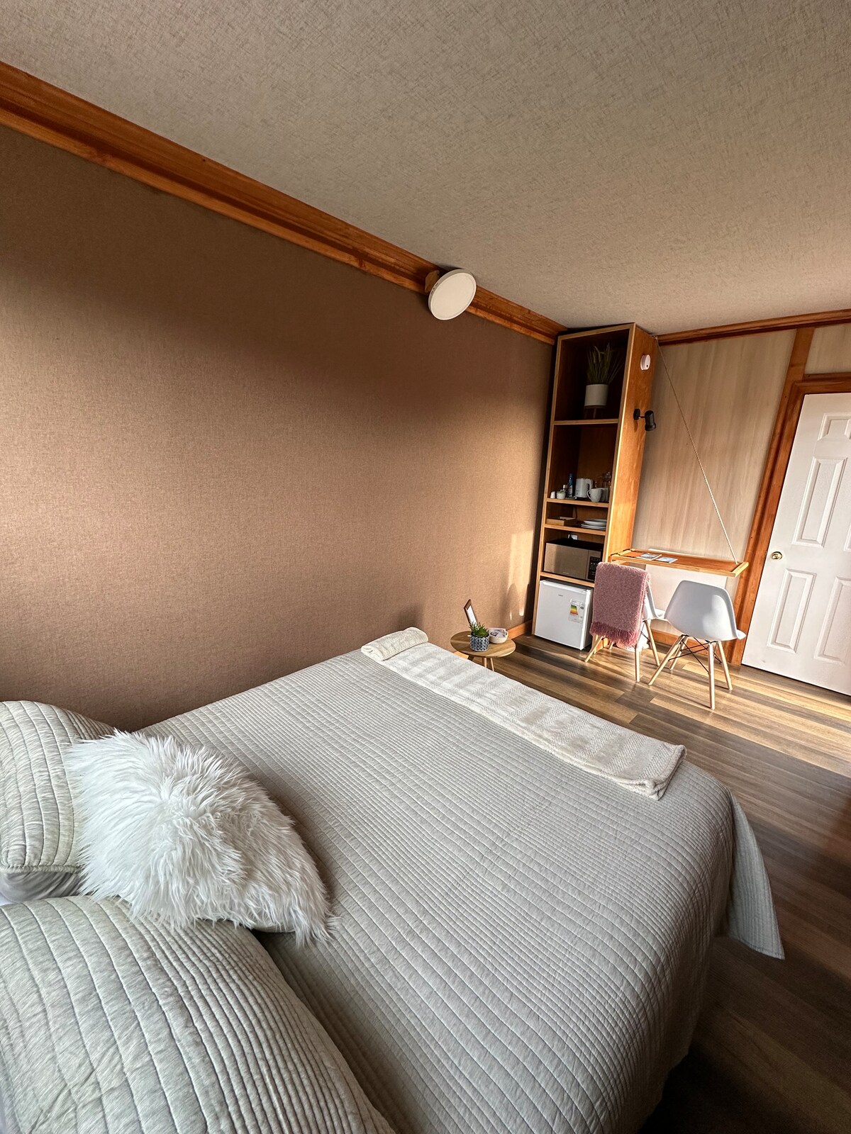 Bienvenido al sur de Chile, cercano a la ciudad de Puerto Varas, a tan solo 7 kilómetros por Ruta 225 Camino a Ensenada, podrás gozar del Lago Llanquihue y su hermoso paisaje natural de bosques y volcanes. Te recibimos en una cómoda y rústica Tiny Home completamente equipada para una pareja. Aprovecha el acceso directo a la playa y atrévete a navegar en kayak o pasear en bicicleta por la Ruta Escénica Lago Llanquihue.