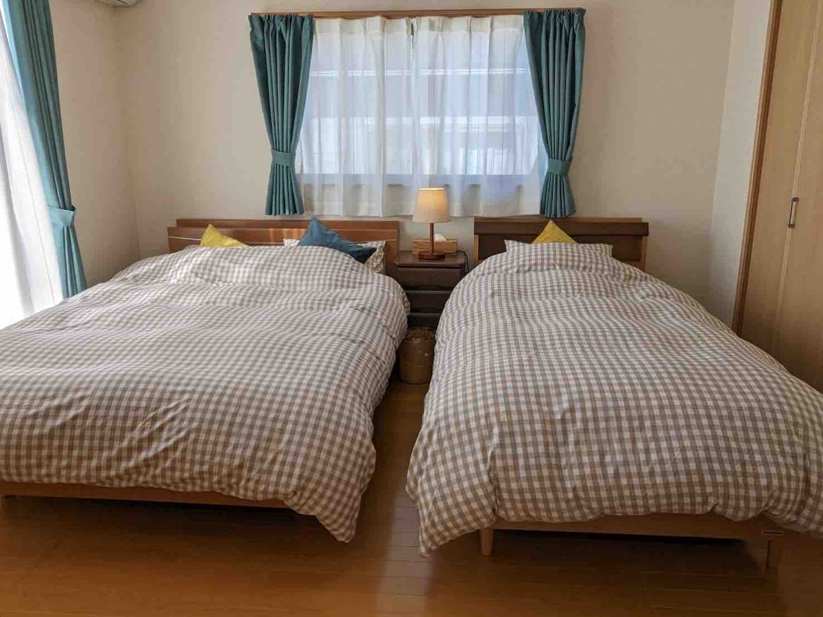 Todas las habitaciones tienen aire acondicionado para una estancia cómoda en verano e invierno. A 9 minutos a pie de la estación JR Chidori. Esta es una hermosa casa privada en una zona residencial tranquila. Hay 4 dormitorios.Hay dos inodoros.Hay un baño.También hay una secadora de ropa. También hay un futón en un suelo plegable de estilo japonés, así que puedes estar seguro de que puedes traer a tu bebé. También podés disfrutar de las vistas cerca de la entrada de la autopista. Puedes estacionar un auto frente a la casa. Comunicate con nosotros para obtener un segundo auto. Estancia convenientemente ubicada para el transporte y las compras.         [Para familias] Perfecto para familias numerosas y bebés. [Acogedor y limpio] Cómodo para dormir cómodo con una cama limpia y esponjosa.         [Estacionamiento gratuito] Puedes estacionar un auto gratis.Ponte en contacto con nosotros para dos autos. Lugares emblemáticos   Es un gran lugar para alquilar un coche y viajar a todas partes.Está a medio camino entre la ciudad de Fukuoka y la ciudad de Kitakyushu, por lo que puedes disfrutar plenamente de Fukuoka.  A través del tranquilo vecindario residencial, hay grandes instalaciones comerciales cerca, supermercados, restaurantes y el famoso santuario Miyajitake.  Dependiendo de la temporada, puedes disfrutar recogiendo fresas, etc. Playas costeras, naturaleza de montaña, playas