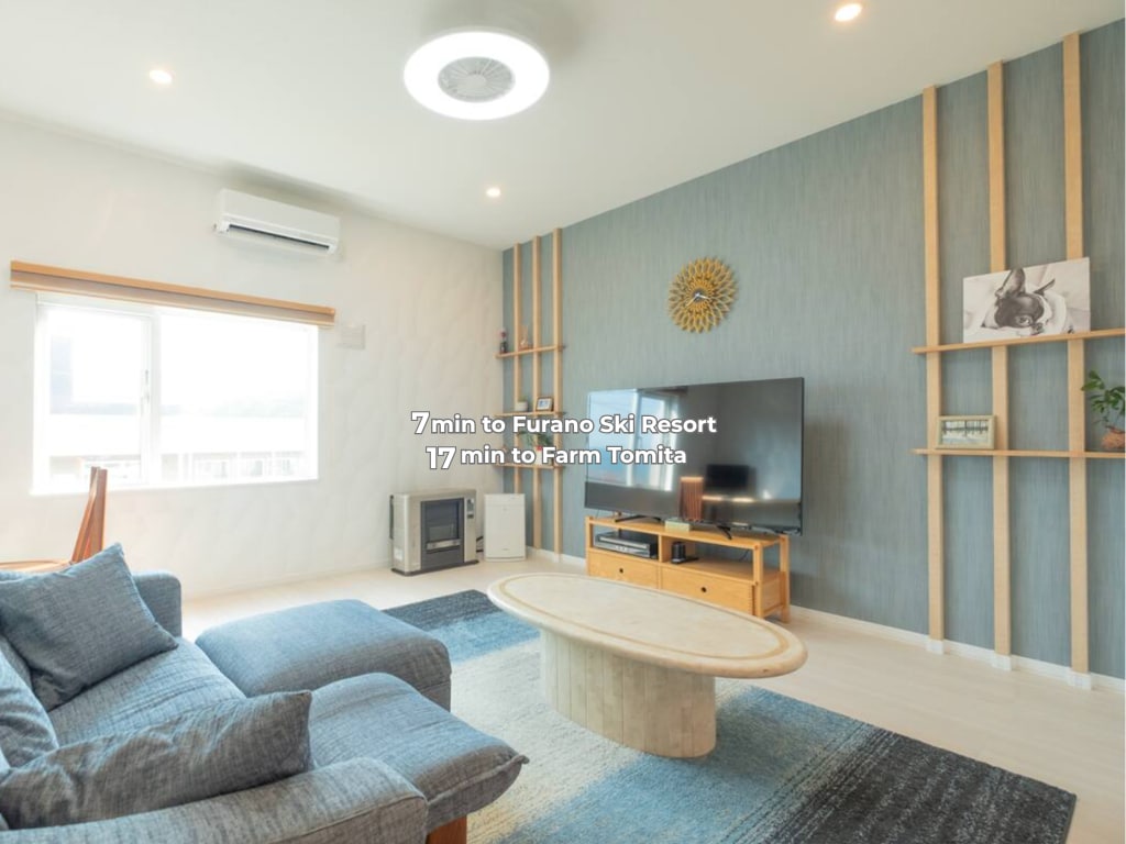 Private entire home in Furano, Hokkaido. Stunning mountain views, 3 bedrooms, sleeps 10. Perfect for ski trips (Furano Ski Resort: 10 min), lavender season (Farm Tomita: 15 min), and autumn foliage. Full kitchen, dishwasher, drum washer, high-speed Wi-Fi, streaming TV, A/C & heating throughout. Free parking. Near Biei Blue Pond, Ningle Terrace & "Kita no Kuni kara" filming locations. Great for families, groups, workcation, corporate retreats & monthly stays. Asahikawa Airport:1hr,Sapporo:2.5hrs.