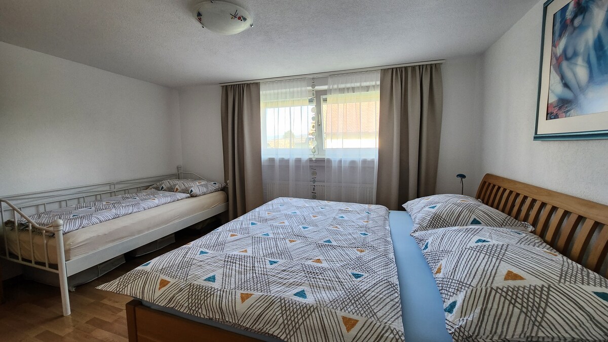 A solo 10 minutos de Bregenz y del lago, ofrecemos un departamento espacioso, con terraza para relajarse y vistas al Bregenzerwald. También podés disfrutar de la ubicación sin un auto. El autobús pasa cada media hora justo en frente de la casa y va al centro. El departamento ofrece dos dormitorios, una cama lateral para bebés, una cocina completa con electrodomésticos de alta calidad, incluido un lavavajillas y una cafetera totalmente automática. Las rutas de senderismo y ciclismo están en las inmediaciones de la casa.