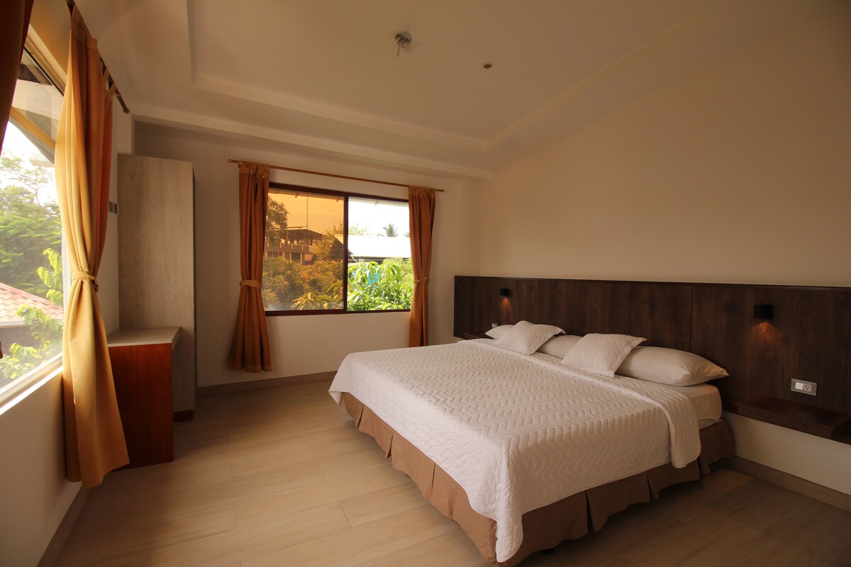 La habitación está ubicada a una cuadra de la playa de Puerto Villamil, la habitación cuenta con una cama matrimonial King size, baño privado. Es perfecto para una pareja viajera que busca disfrutar al máximo de su estadía, noches de encanto, vista increíble a una laguna, comida exquisita y ambiente de primera.