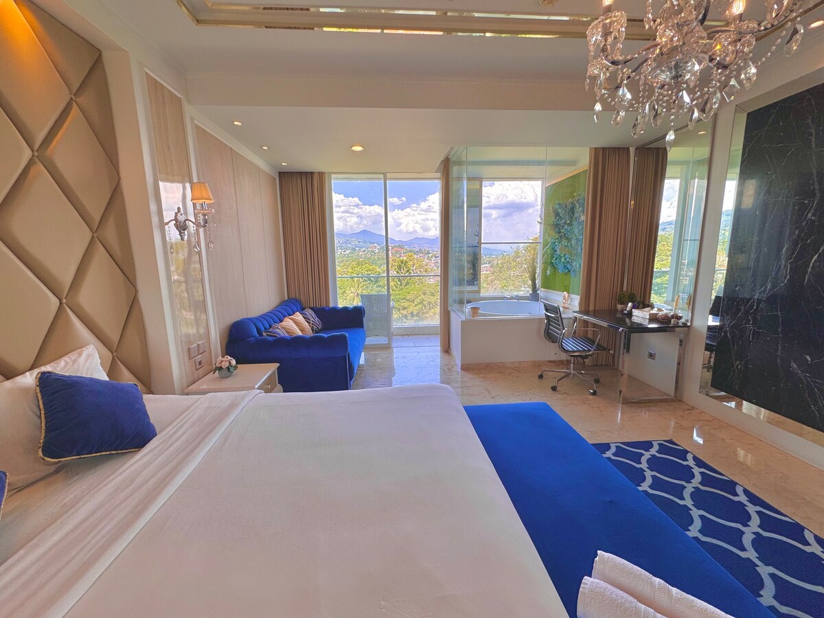 🌟 Diamond Deluxe Jacuzzi Suite Art Deco 🌟 Our suite is located on Level 8 of Art Deco Luxury Hotel & Residence, featuring modern décor and a classic style that offers the ultimate luxury experience. This suite offers a stylish living room and a private balcony jacuzzi with spectacular Bandung views. The location is close to Dago and Bandung’s top tourist destinations. Perfect for couples, solo travelers and small groups. Check our Profile for 1–4 BR units and lux villas across Bandung