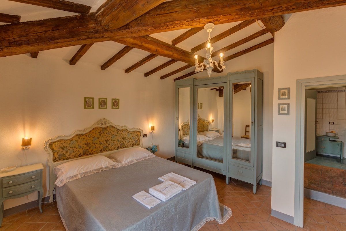 Vivi l'autenticità toscana nel mio luminoso appartamento. Rilassati nell'ampio salotto e nella camera matrimoniale con eleganti travi a vista sbiancate e pavimento in cotto originale. Massima comodità: Doppi servizi (uno in marmo nero di design, l'altro rustico con vasca/lavatrice), cucina attrezzata, AC e WiFi super veloce. Un rifugio di pace a portata di mano. Prenota ora! (Max 380 caratteri)