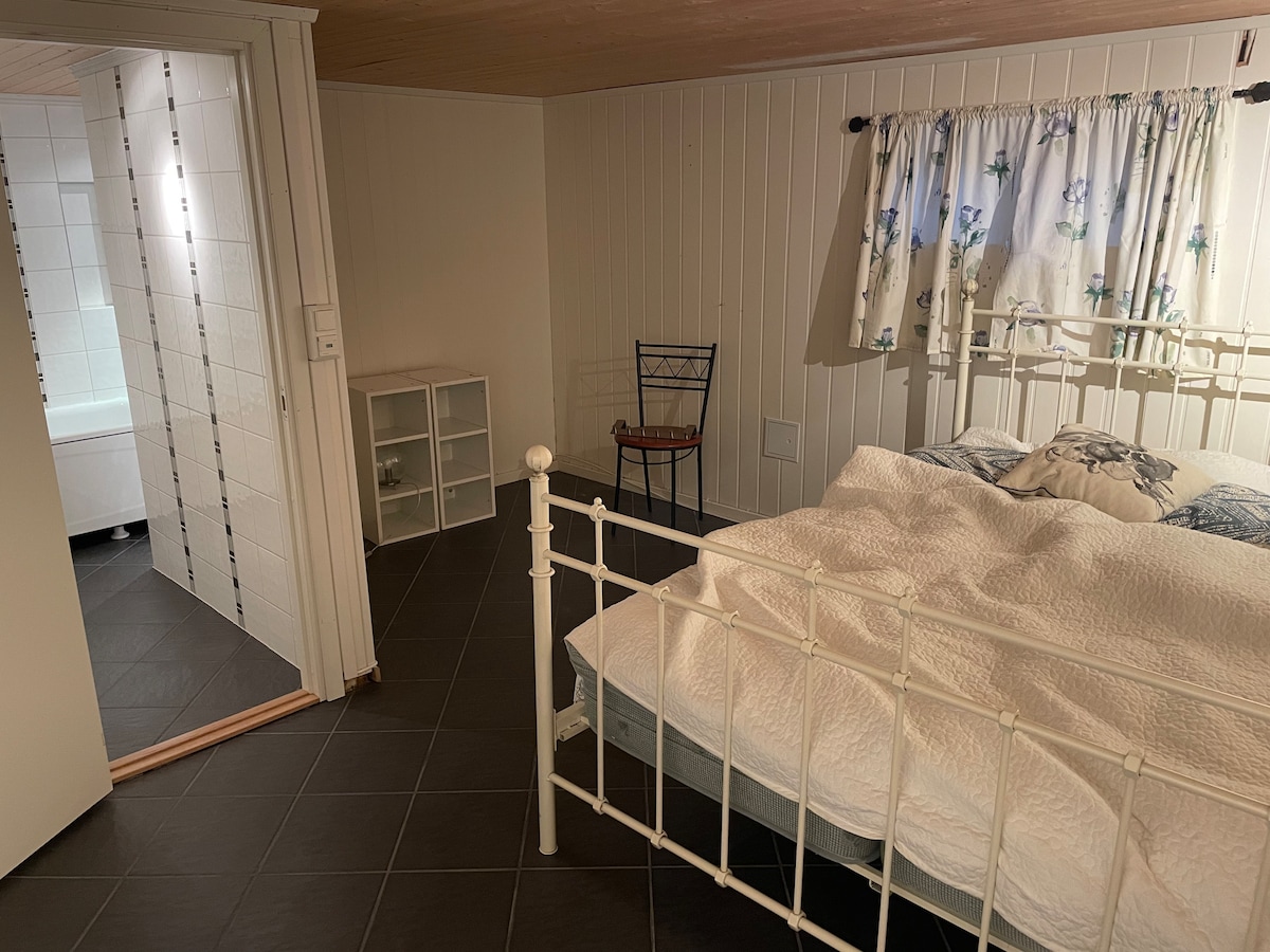 Departamento en el sótano en casa de piedra de granito de 1953. Buen ambiente. A solo 20 minutos a pie de la estación de tren y autobús. Entrada privada. Baño nuevo y cocina pequeña. Internet y televisión. La casa está en un entorno tranquilo y hay muchas oportunidades para hacer senderismo en los bosques y nadar en el mar. El centro de la ciudad de Fredrikstad y la universidad están a solo 20 minutos a pie. A 5 minutos del ferry gratuito que te lleva al casco antiguo o al centro de la ciudad. Quiero que todos los huéspedes se sientan bienvenidos y como en casa. Baño en la bañera por acuerdo.