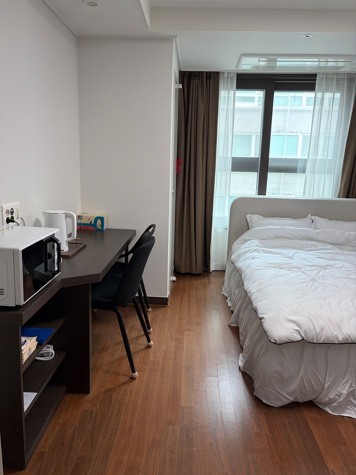 🏡[Hotel Bella] 20 📍City Hall-gil, Chuncheon-si, Bela City, Chuncheon 🚗estacionamiento Registro de estacionamiento gratuito disponible: se requiere un número de matrícula completo Configuración 🛏️de la habitación Cama tamaño queen cómoda para una pareja o una estadía más larga La ropa de cama se reemplaza incondicionalmente al mantener la habitación Servicios 🍽️de cocina Proporciona vajilla y platos para el número de personas (X adicionales) Cocina de inducción, nevera 🛏️Servicios: 1 litro de agua mineral (2 botellas por noche) Toallas (4 por noche incluidas) No laves las → toallas Lavado a mano, limpiador de espuma, jabón, toalla de ducha Lavado, champú, acondicionador, secador de pelo Pasta de dientes, tocador 📶Instalaciones 🌐 Wifi (Internet ilimitado y de alta) 📺 Android TV/Netflix disponible (※ Solo se proporciona plataforma) 🕓Horas de uso Check-in: 15:00 (entrada sin contacto) Salida: 11:00 a. m. 🛍️Servicios cercanos Tienda de conveniencia: alrededor de 20 m Estación de Chuncheon, Legoland: 5 minutos en coche A 5 minutos a pie de: Bancos, centros comerciales subterráneos, tiendas (Brown 5th Street), mercado tradicional, callejón de costillas de pollo 🍽️Restaurantes y lugares de interés sugeridos Se pueden recomendar restaurantes locales, se pueden recomendar cursos de turismo Ruido generado durante eventos frente al ayuntamiento.